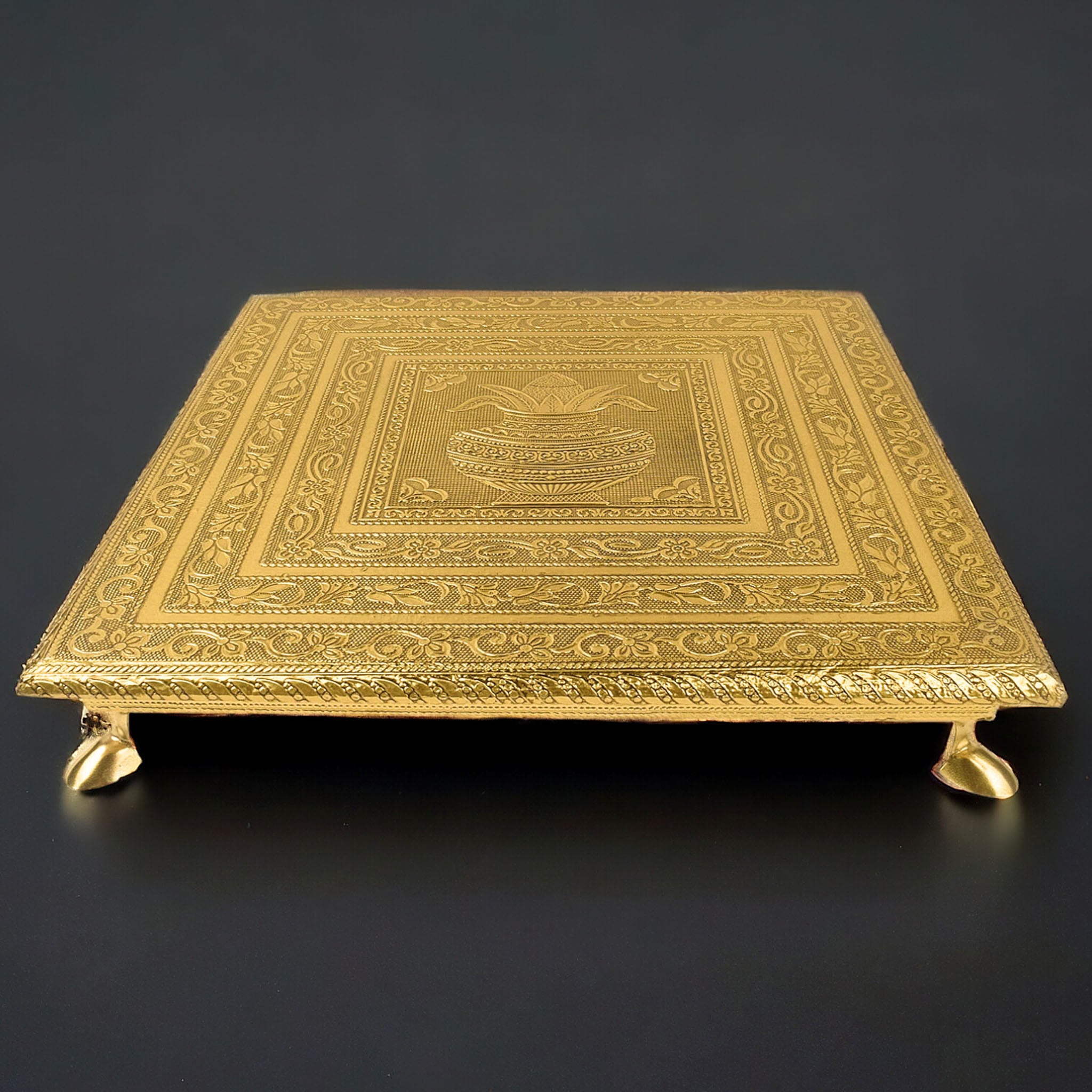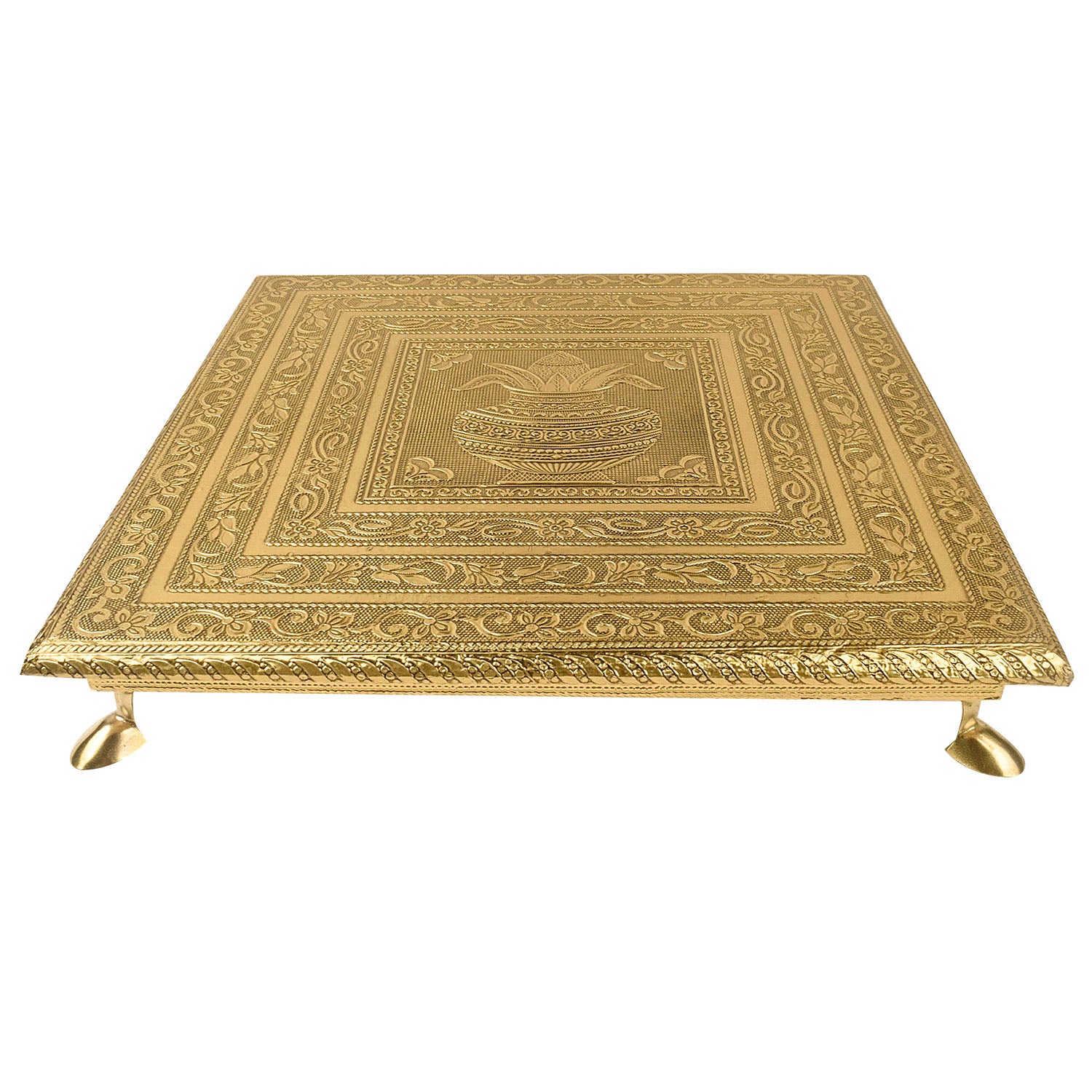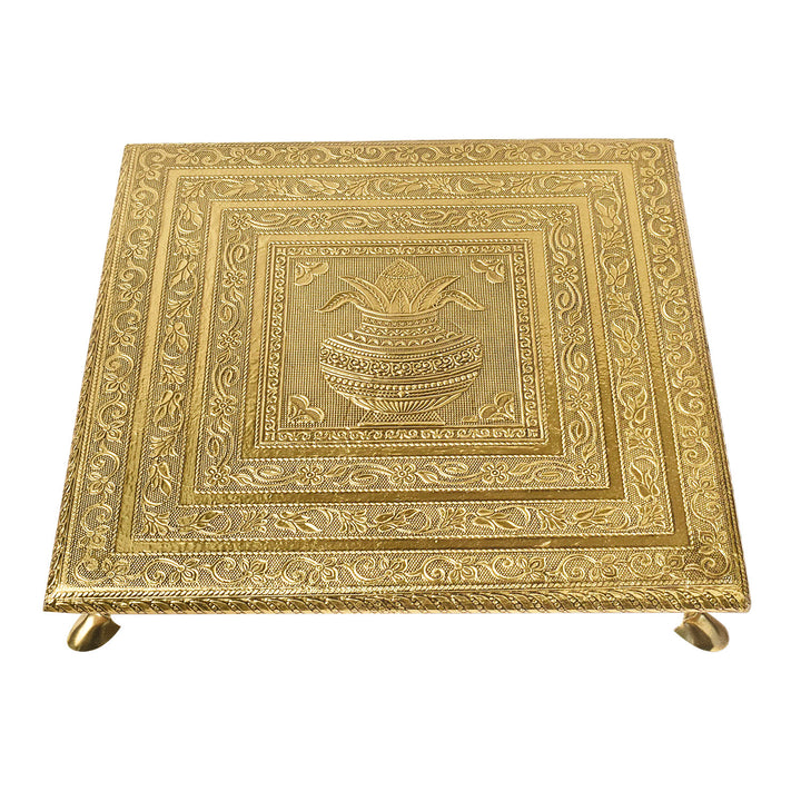 • Item Name:Β Wooden Chowki Featuring Kalash Accents