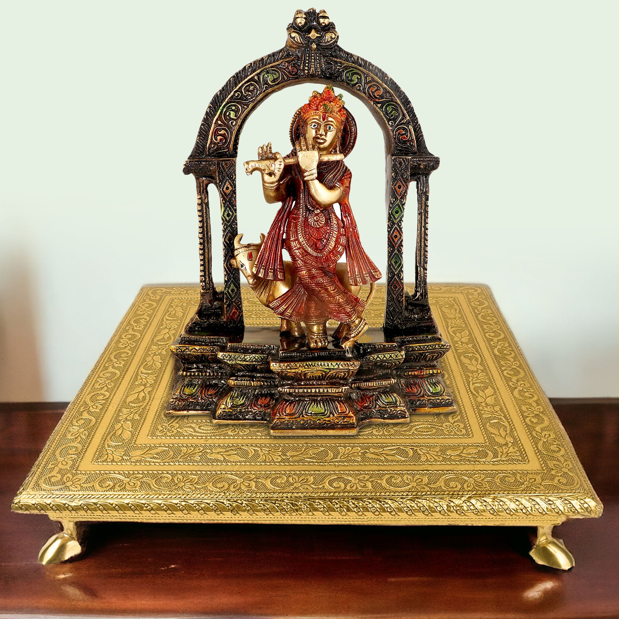 • Description:Β The golden tones of the Meenakari work, complemented by the symbolic Kalash design, bring a touch of opulence to your sacred space. This wooden chowki not only provides a stable foundation for your religious idols but also stands as a captivating piece of decor, infusing regal charm into your worship rituals.