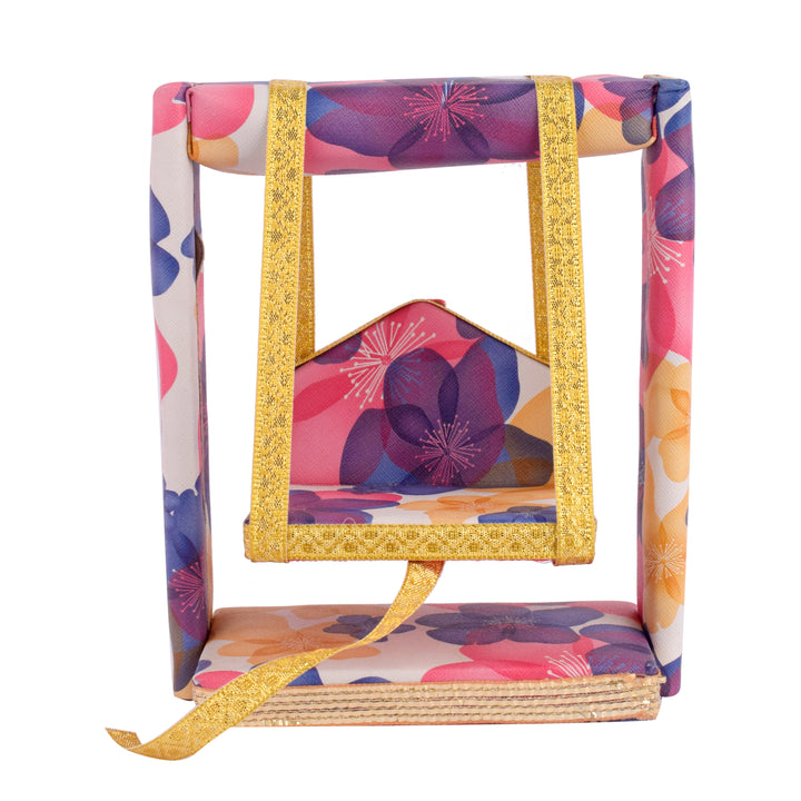 laddu gopal jhula | divine gopal swing | floral printed laddu gopal jhula | krishna swing for janmashtami | decorative jhula for bal gopal | gopal swing with floral print | laddu gopal pooja jhula | wooden jhula for kanha ji | bal gopal swing for temple | designer jhula for laddu gopal