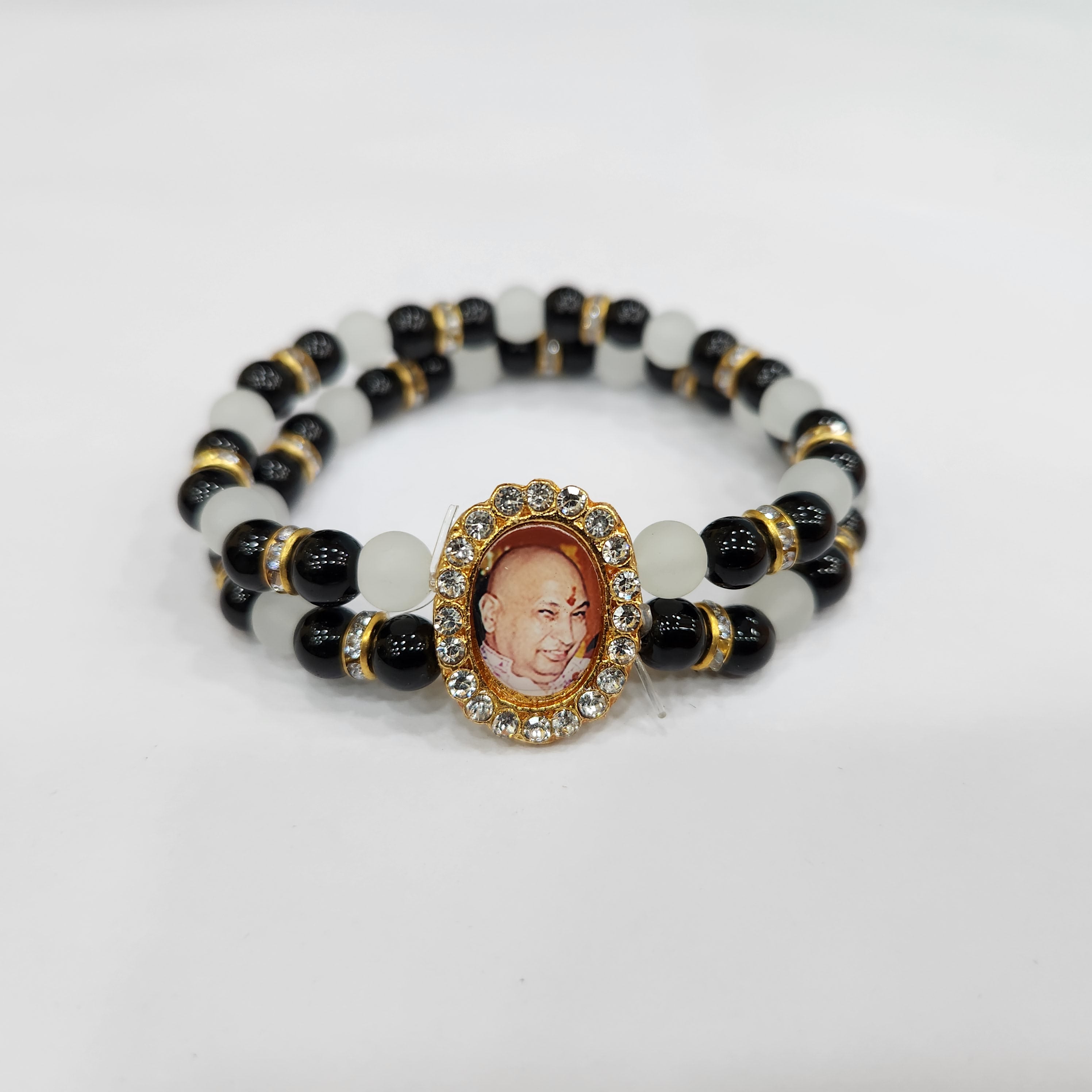 Our Guruji bracelet is a tangible symbol of divine connection. Crafted with care and reverence, it is designed to be worn close to your heart, serving as a constant reminder of Guruji's presence. The bracelet is adorned with sacred symbols and gemstones that hold spiritual significance, channeling positive energy and protection.