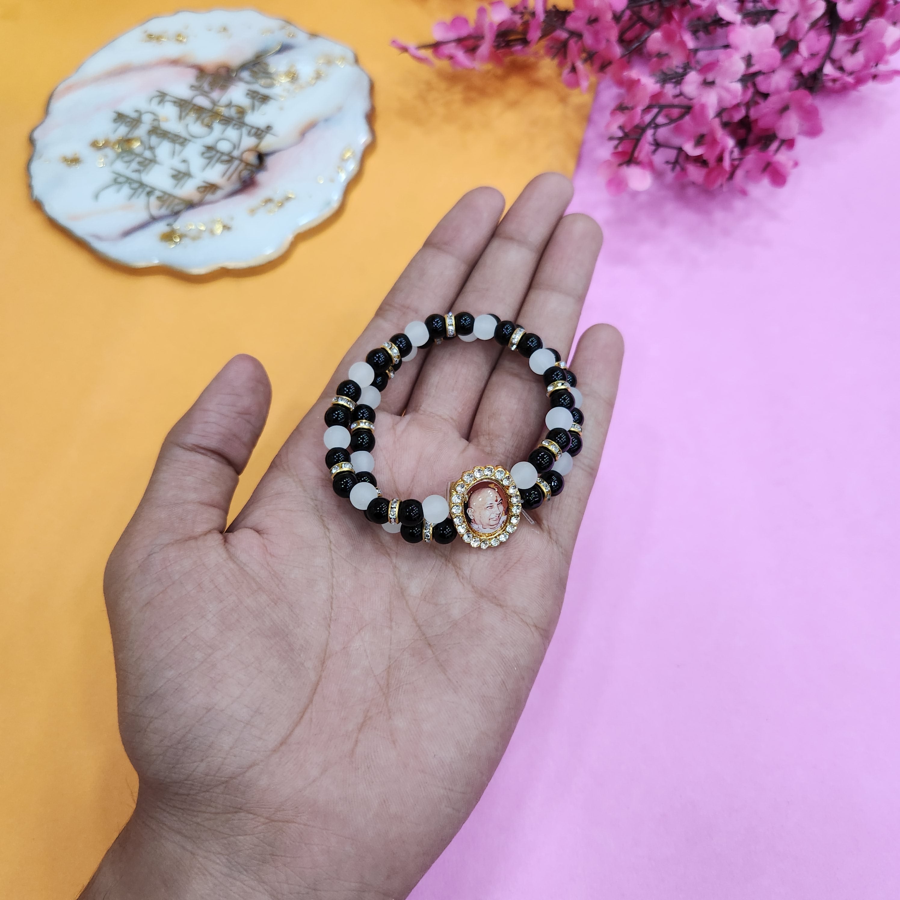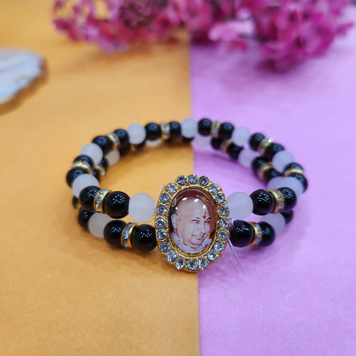 • Item Name: Double Band Round Pearl Bracelet with Jai Guruji Swaroop Handmade Bracelets for Men and Women