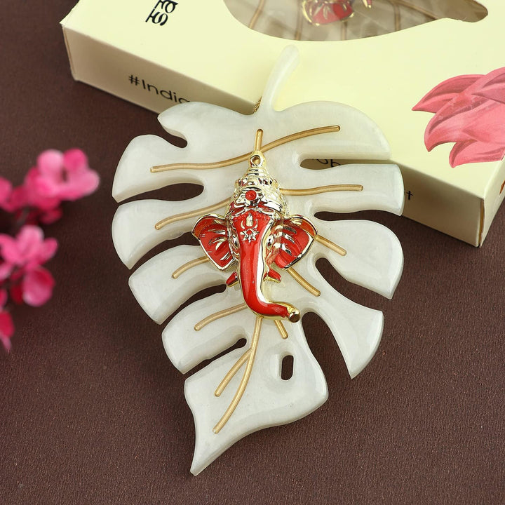 Shop Elegant Finish Ganesha On Leaf Wall Hanging | Satvikstore.in – satvikstore.in