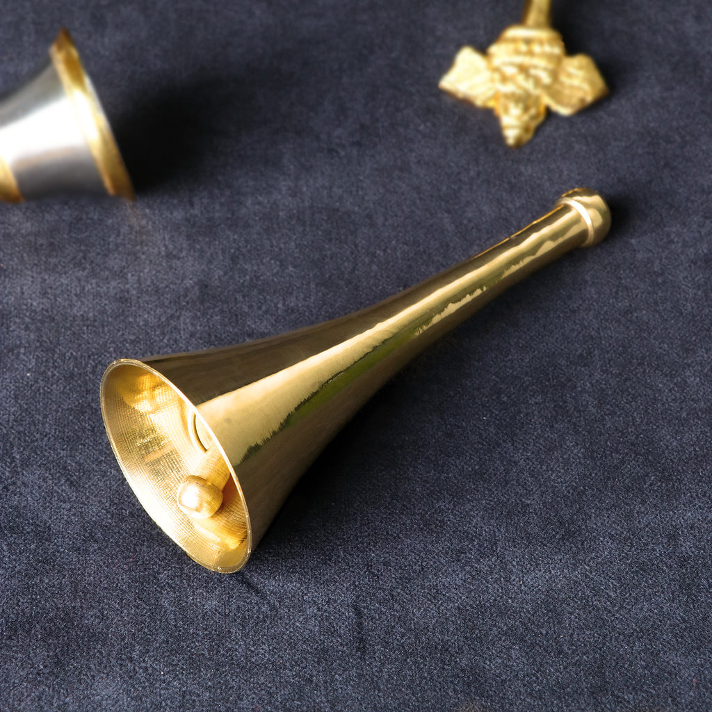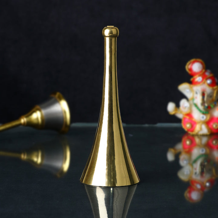 brass pooja bell | cone shape ghanti | brass ghanti for temple | pooja ghanti for home | traditional pooja bell | spiritual accessories | devotional pooja items | cone shaped aarti bell | temple ghanti | Indian brass prayer bell | brass pooja item | cone design pooja bell | handcrafted brass bell |