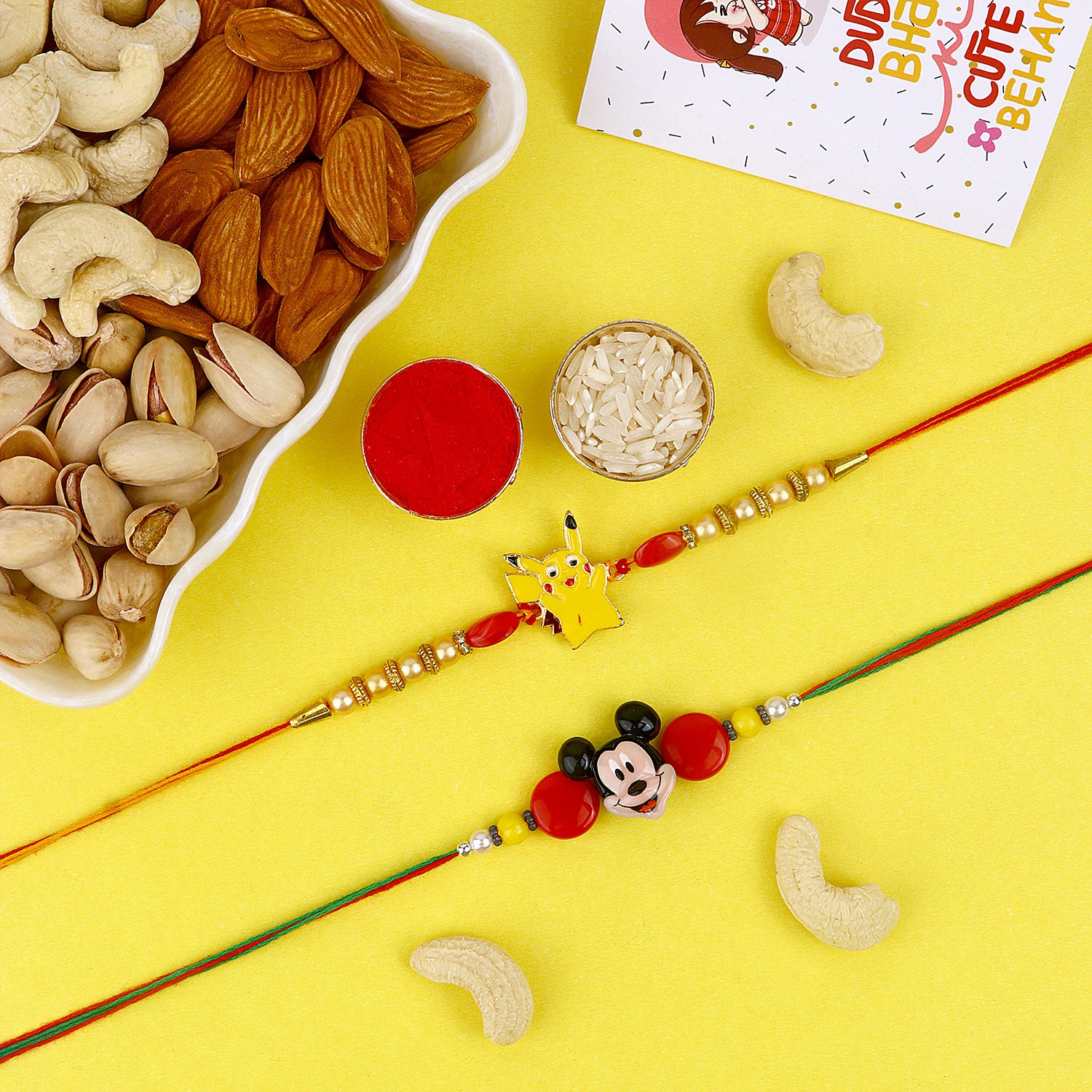 Beaded Bhaiya Rakhi Set of 2: Bedecked with colorful beads, these rakhis represent the joyous moments and cherished memories of growing up together. Embrace nostalgia and affection with this delightful beaded rakhi set.