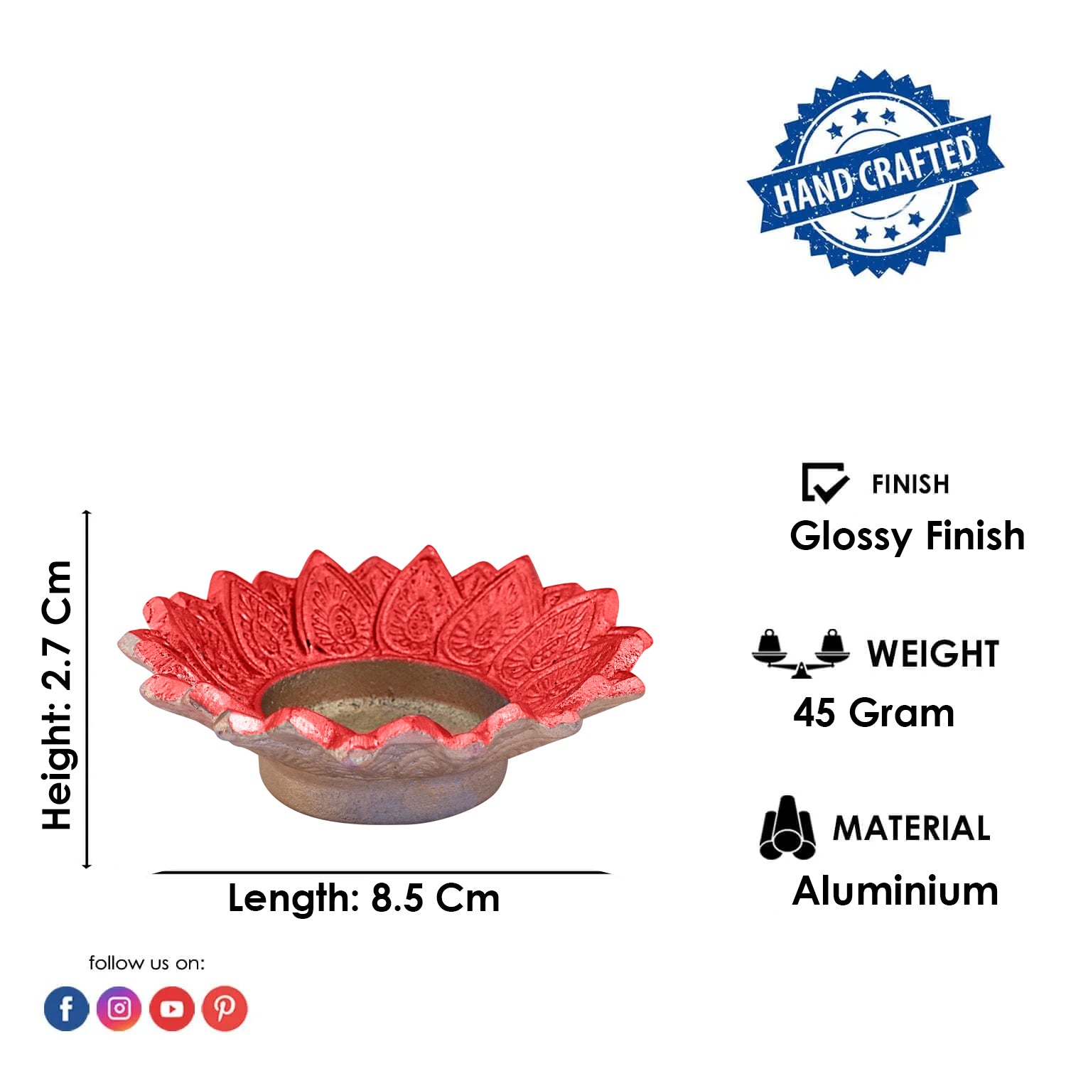 Floral Chakra Metal Diya in Red Color (Pack of 2)