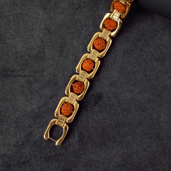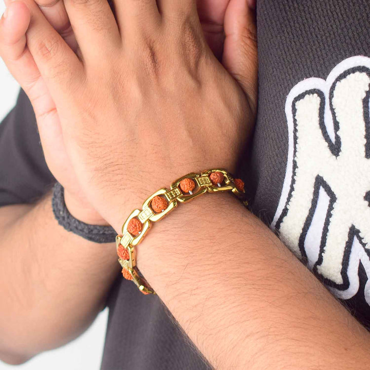 Gold Plated Rudraksha Bracelet | PVD Coated Rudraksha Bracelet | Spiritual Fashion Bracelet | Rudraksha Gold Bracelet | Premium Rudraksha Handwear | Stylish Spiritual Bracelet | Energized Rudraksha Jewelry | Men’s Rudraksha Bracelet | Rudraksha with Gold Polish | Adjustable Rudraksha Bracelet