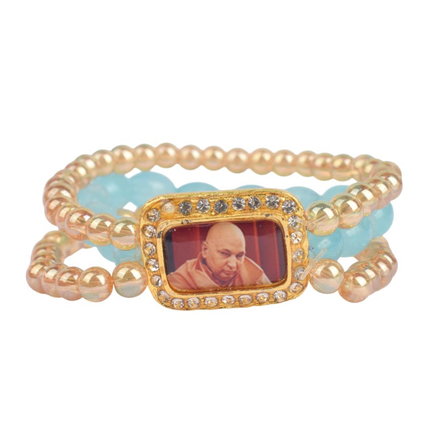 Golden Clear & Baby Blue Triple Layer Guruji Swaroop Bracelet