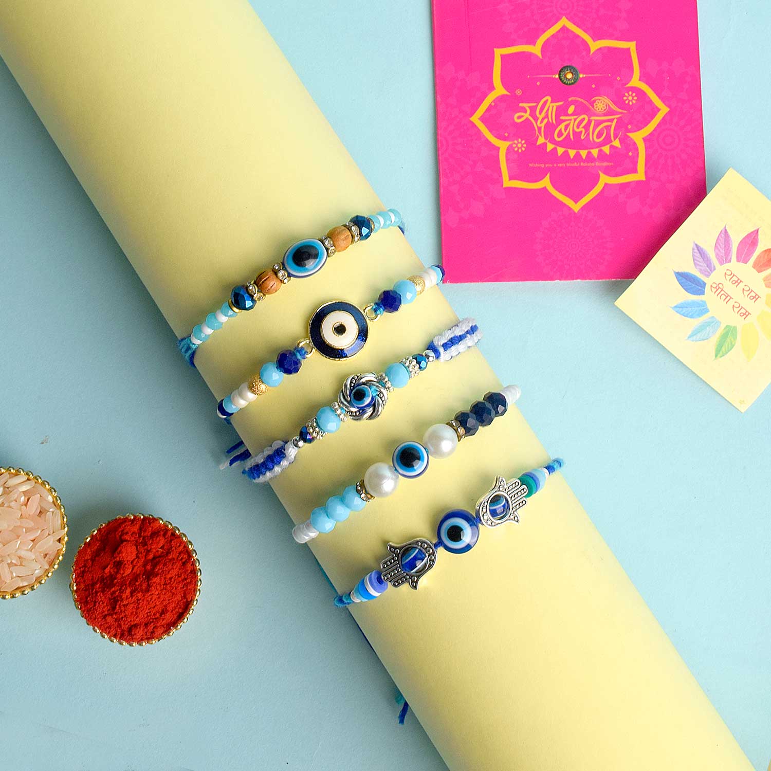 Gorgeous Evil Eye Bhaiya: Rakhi Set of 5