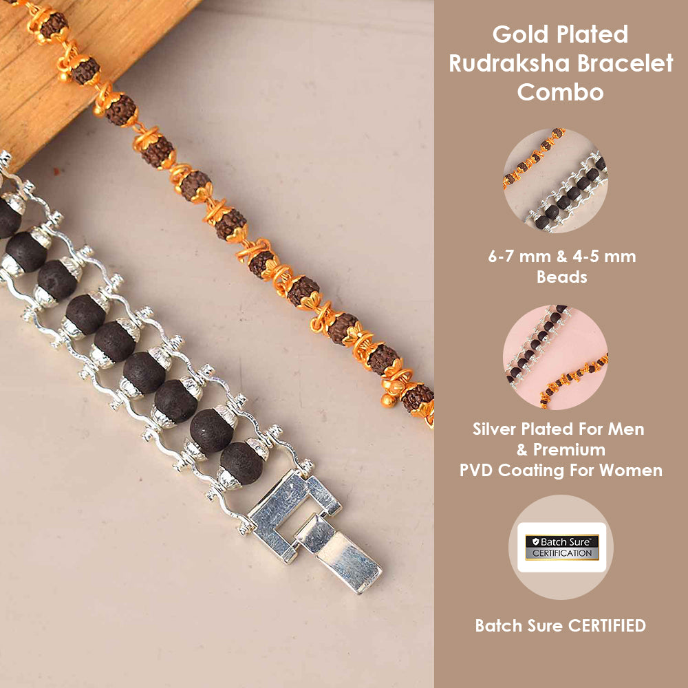 • Combo: 1 Silver Plated Karungali Bracelet + 1 Gold Plated Rudraksha Bracelet