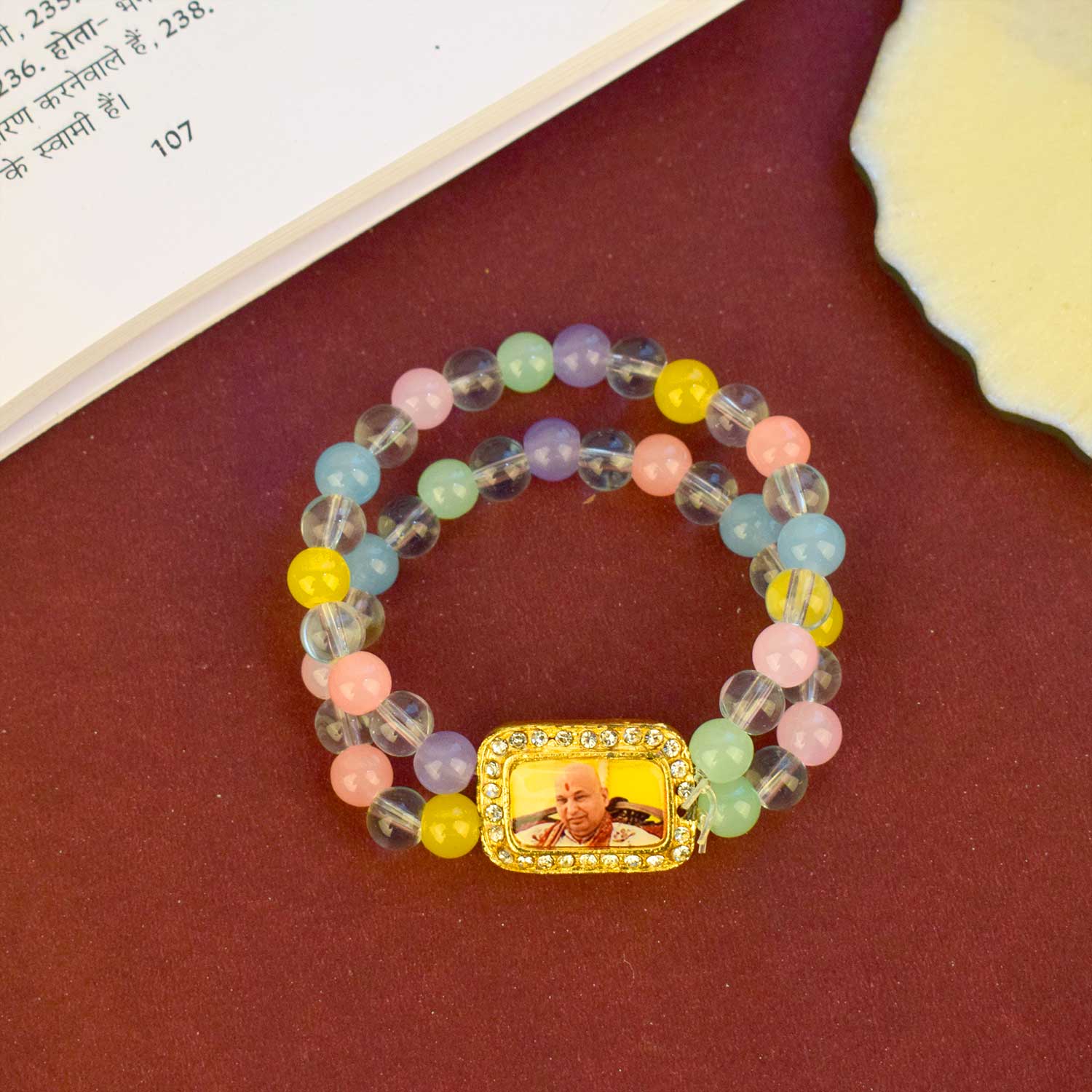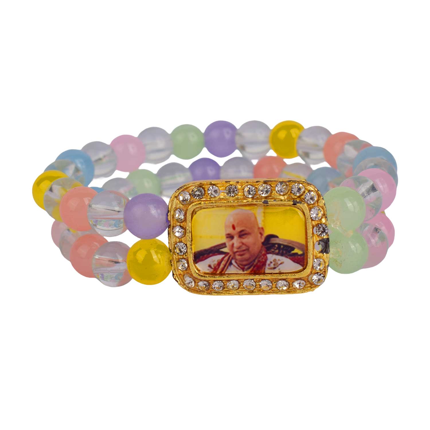 Buy Online | Guruji Swaroop Bracelet – Clear & Multicoloured Beads | Satvikstore.in – satvikstore.in
