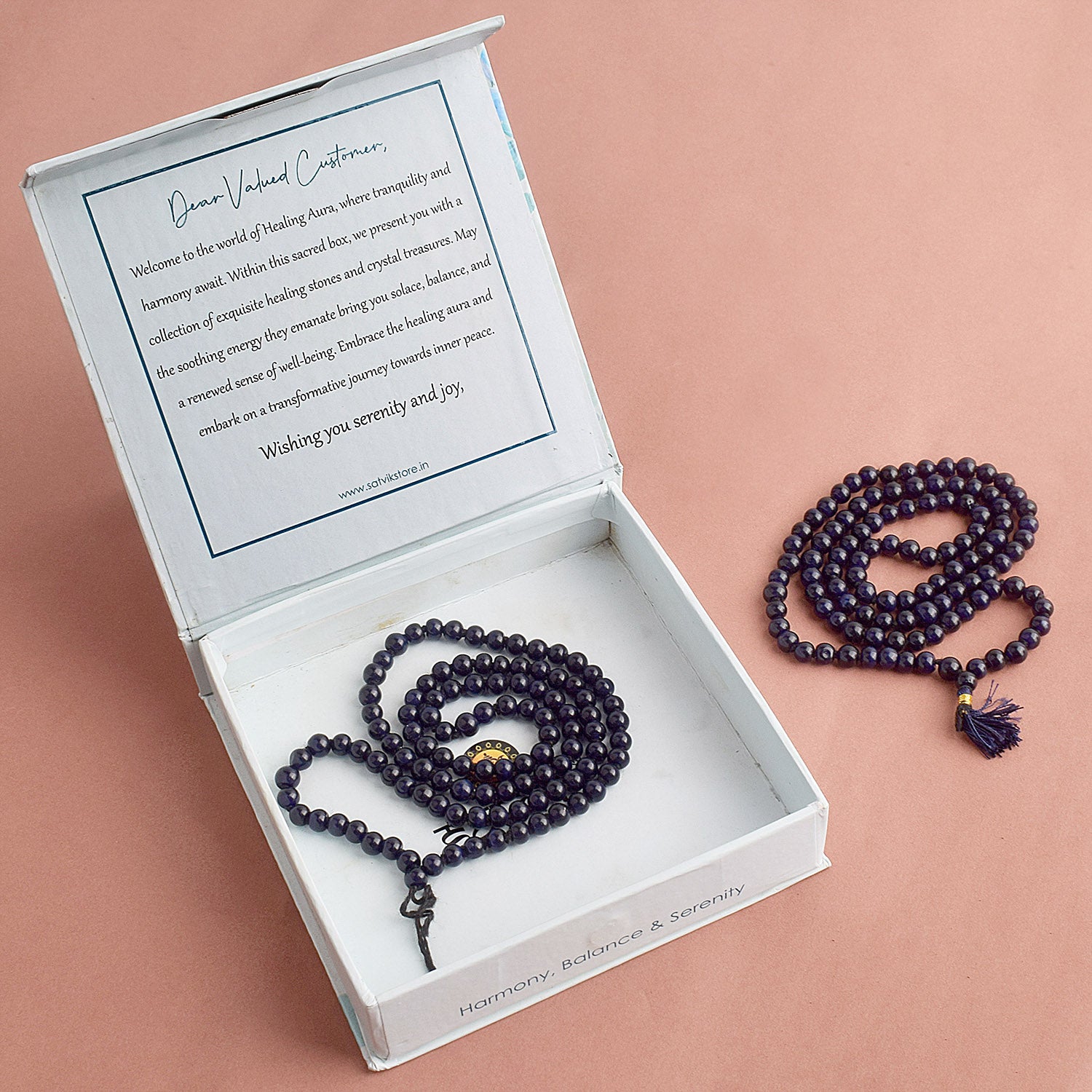 The Hakik Jap Mala (Black) is crafted from Black Agate (SiOβ‚‚ – Silicon Dioxide), a powerful stone known for its protective, grounding, and balancing properties. This sacred mala is linked to the root chakra, enhancing stability, confidence, and shielding against negative energies. Ideal for mantra chanting, meditation, and spiritual well-being, it promotes inner strength, clarity, and emotional resilience.