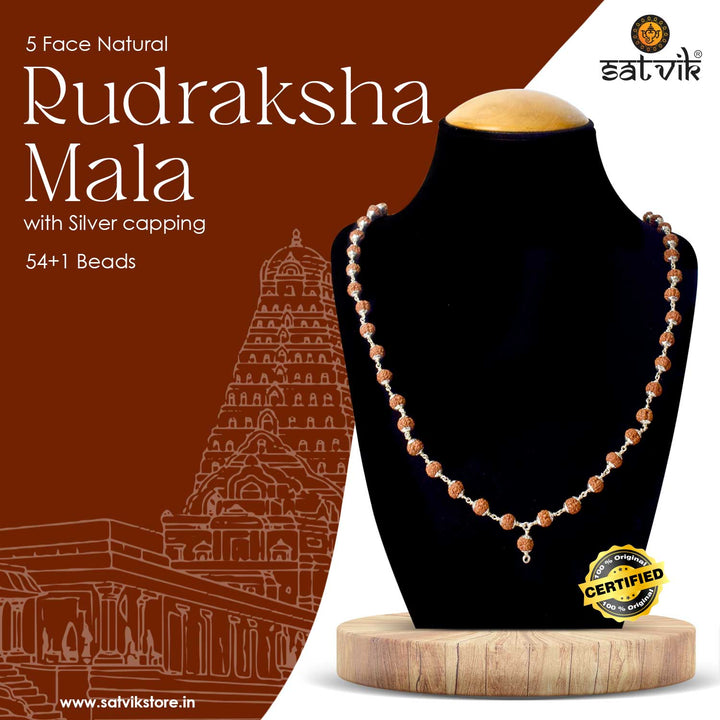 Buy Online | Certified Panchmukhi Rudraksha Mala with 925 Silver Caps | Satvikstore.in – satvikstore.in