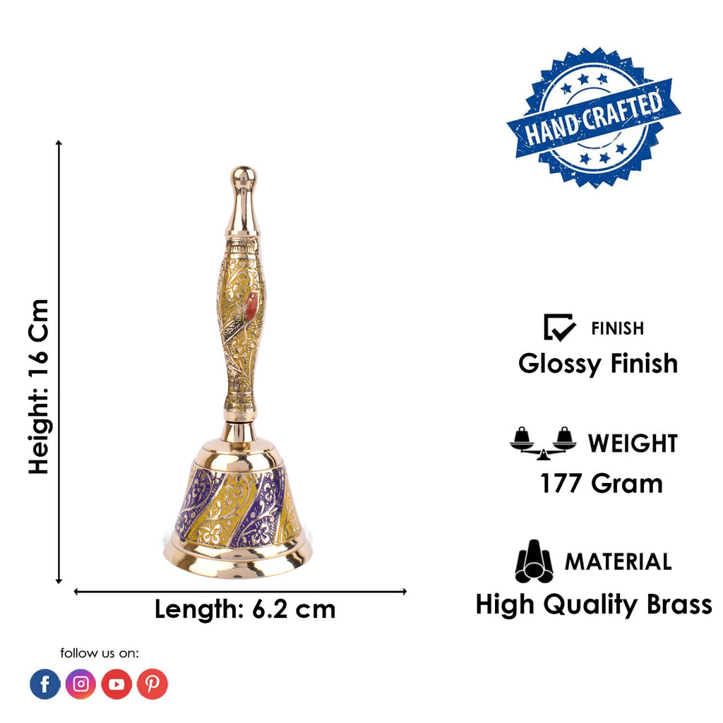 • About Product: Ringing bells are like a message to the whole world of a new day that starts with a visit to the temple/God making the start of the day- the best one. It is often called as Pooja bell or Ghanti. Handheld bells are held in the left hand and rung continuously while the various other Puja items are offered to God with the right hand. It is considered that the ringing bells ward off an evil spirit and is pleasant to God. Brass Pooja Bell is perfect to your home temple/aarti session and will have everyone mesmerized. The charming sound of this brass hand bell will reach out your prayers to the God and fill the atmosphere with divine sound and live music to the aarti during any Pooja/ceremony and also remove negative energy from your house/ office. Bring a shiny and beautifully crafted auspicious Pooja Bell Made up of Brass Material, Can Be Used for Worship At Home/Temple/Office, also an ideal gift for your loved one.