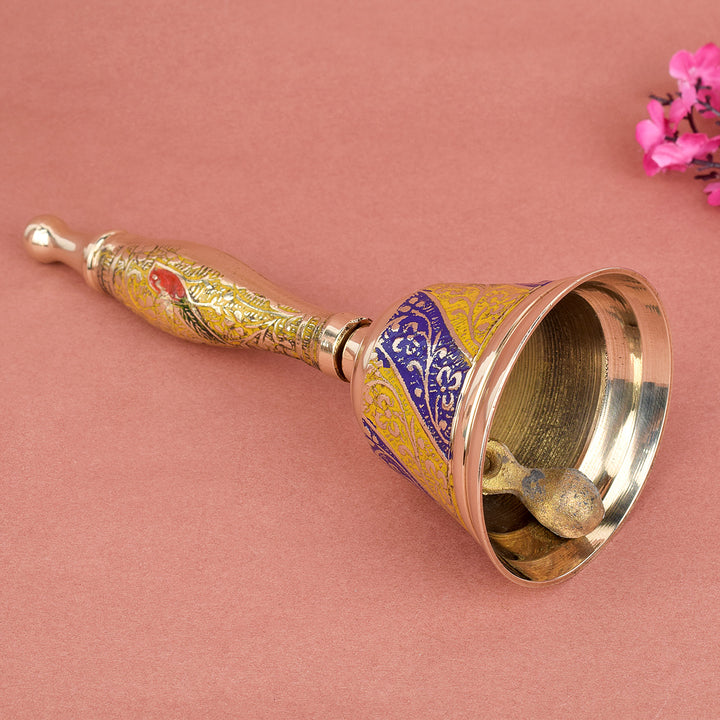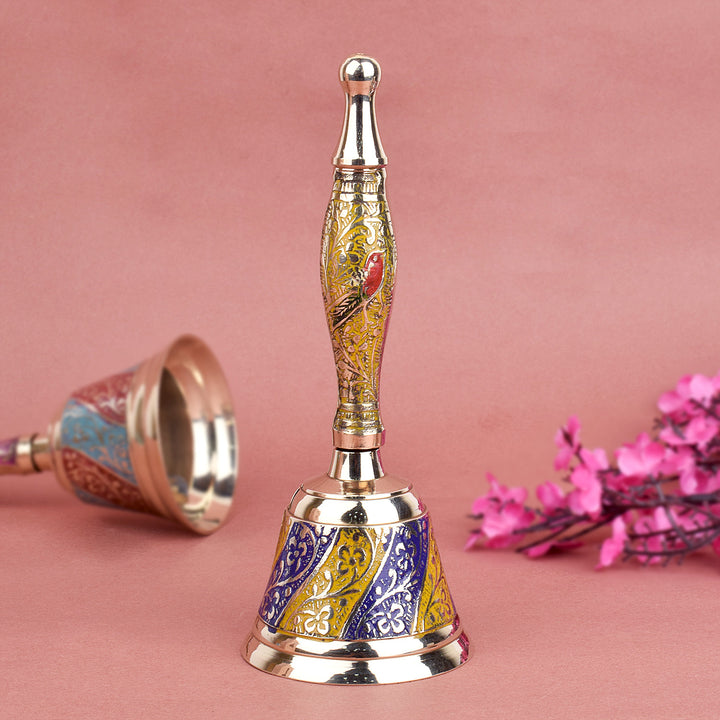 • Item Name: Handcrafted Brass Puja Bell (Yellow & Blue)