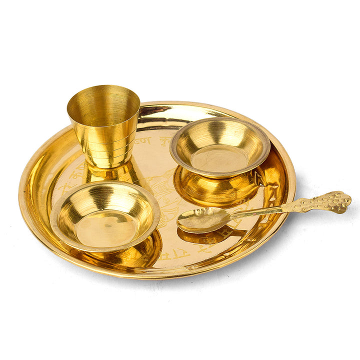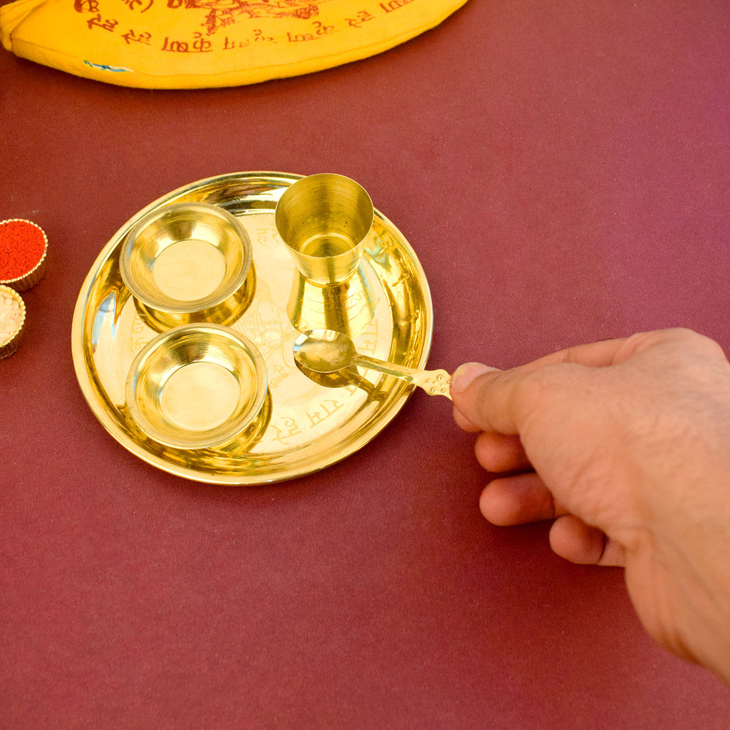 • Material: The Brass Puja Thali is made from High-Quality Brass Material