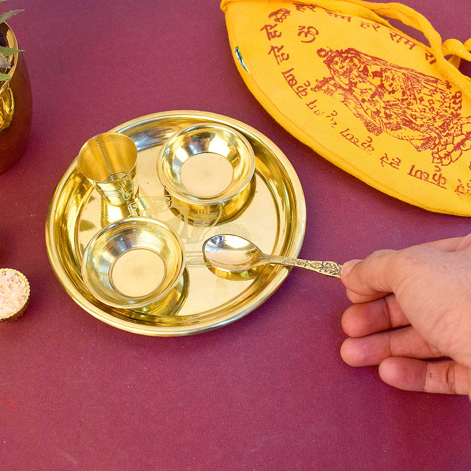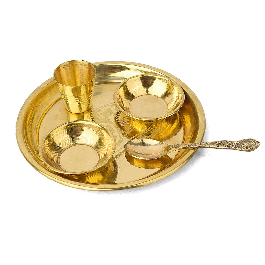 • Material: The Brass Puja Thali is made from High-Quality Brass Material