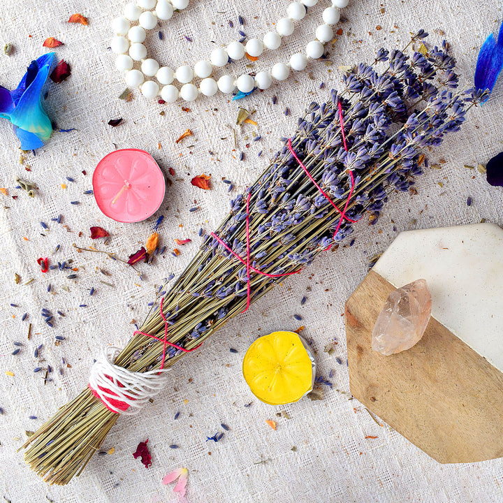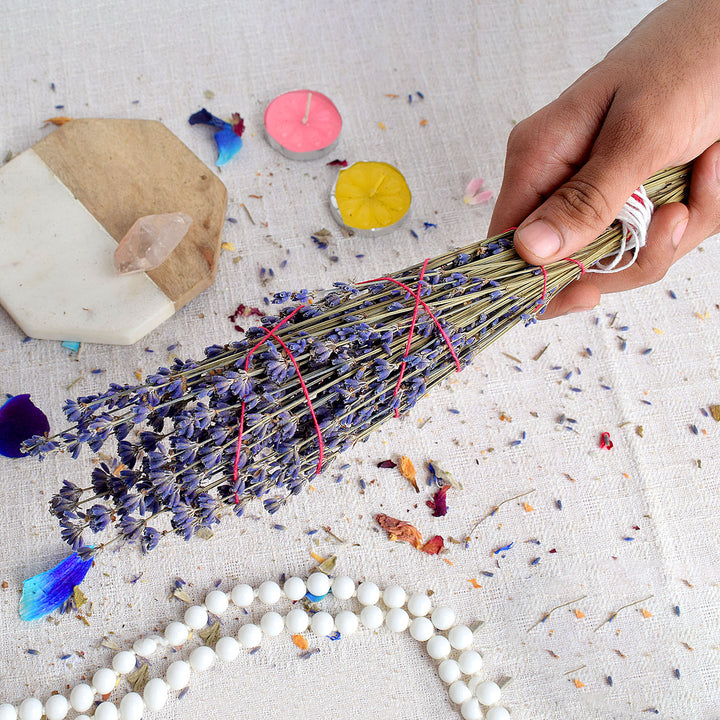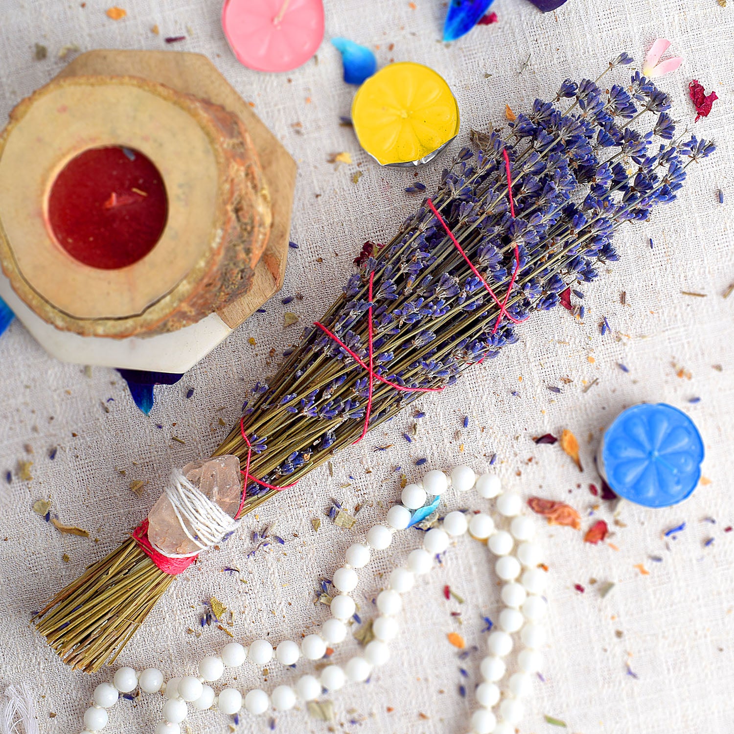 Buy Lavenders with Clear Quartz Pointer Healing Smudge-Satvikstore.in – satvikstore.in