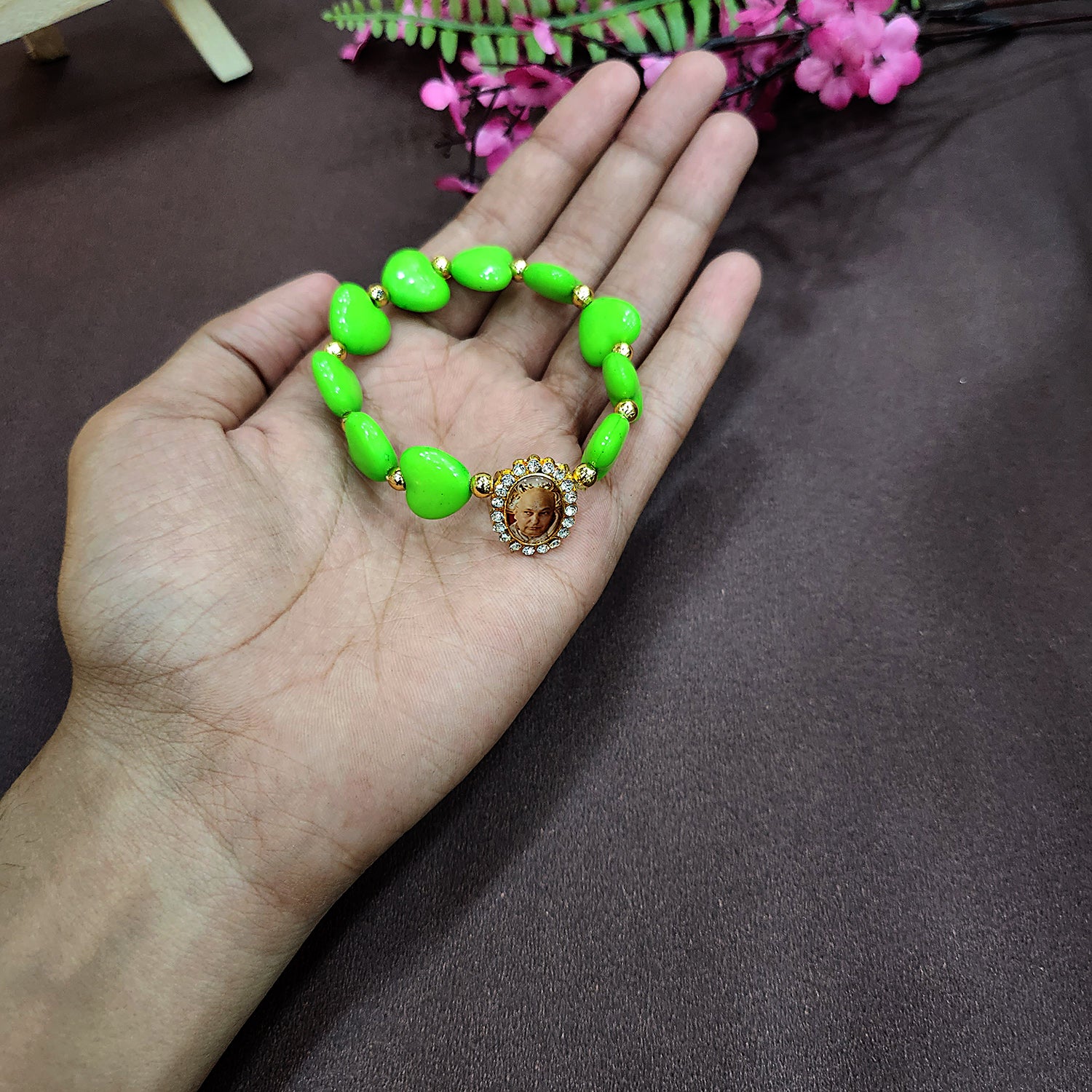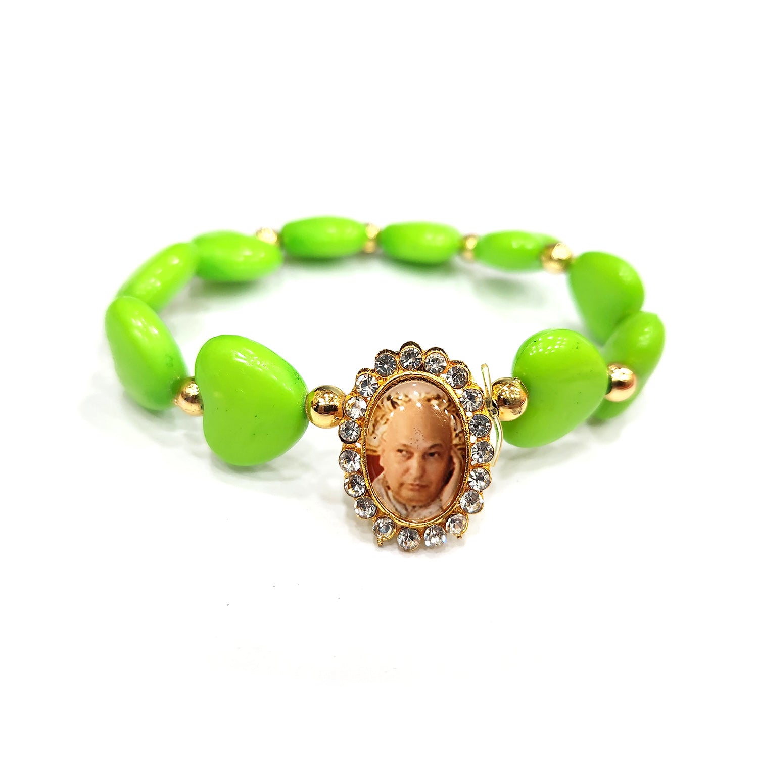 Jai Guruji Swaroop Lawn Green Heart Shape Bracelet | Satvikstore.in – satvikstore.in