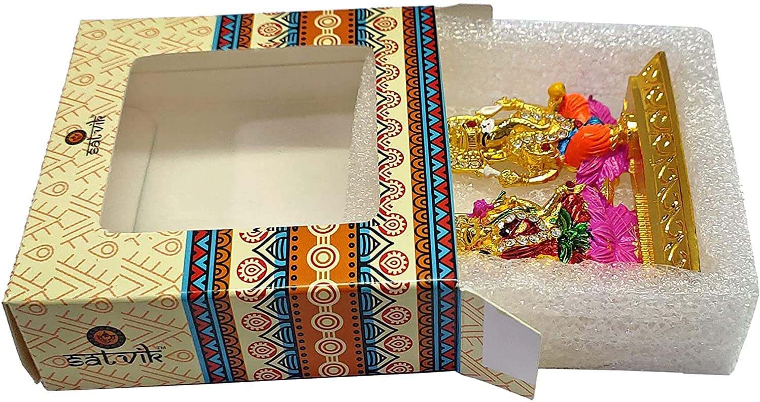 About Product: Beautifully Engraved Lakshmi Ganesh Murti Car Dashboard. The Laxmi Ganesh Idol (Metal) is an exquisite representation of two revered deities—Goddess Lakshmi, the goddess of wealth and prosperity, and Lord Ganesha, the remover of obstacles and the god of new beginnings. This beautifully crafted metal idol blends intricate details and fine craftsmanship to bring blessings of good fortune, success, and spiritual abundance.