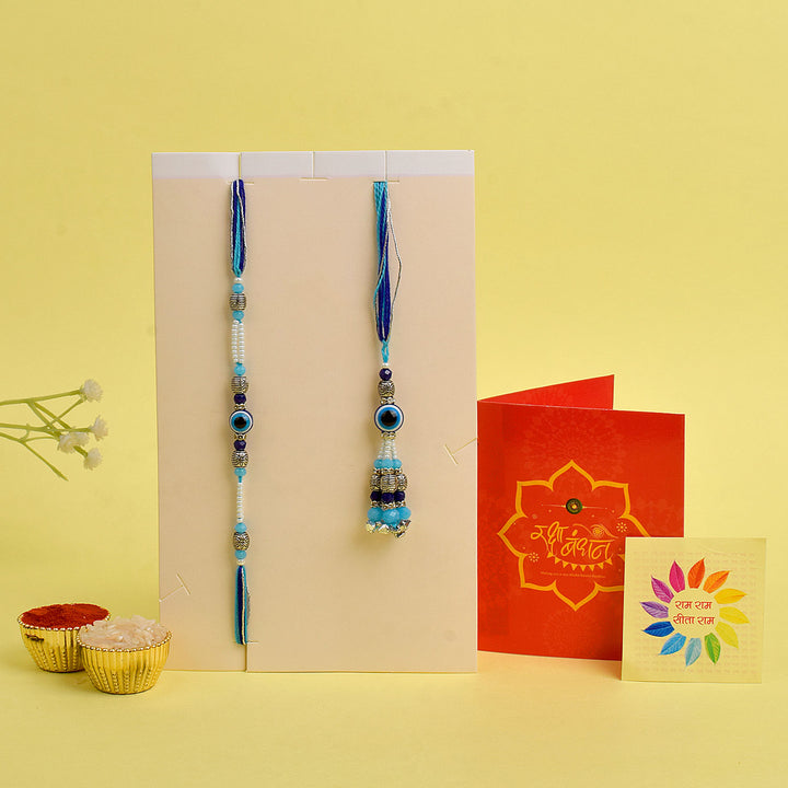 • Package: 1 Men Rakhi, 1 Women Lumba Rakhi, Roli Chawal Pack, Ram & Sita Theme Stickers