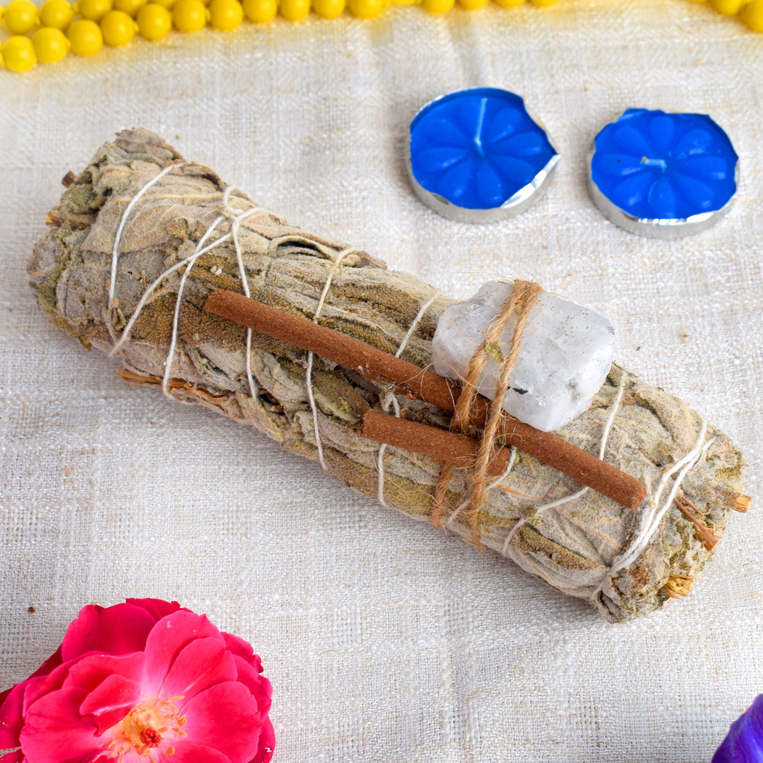 • Item Name: MEXICAN INCENSE SAGE WITH RAINBOW MOONSTONE CRYSTAL HEALING SMUDGE