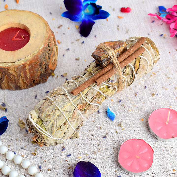 • About Product:Β We at Satvikstore.in Introducing our captivating Mexican Incense Sage with Tiger Eye Crystal Healing Smudge. Immerse yourself in the aromatic journey of Mexican incense sage while harnessing the grounding and protective energy of tiger eye crystal. This powerful combination purifies your space, enhances courage, and promotes balance. Elevate your rituals with our handcrafted smudge, meticulously made for superior quality. Experience the transformative benefits of Mexican Incense Sage with Tiger Eye Crystal Healing Smudge and invite strength, confidence, and positive energy into your life. Create a sacred space that empowers and inspires you.