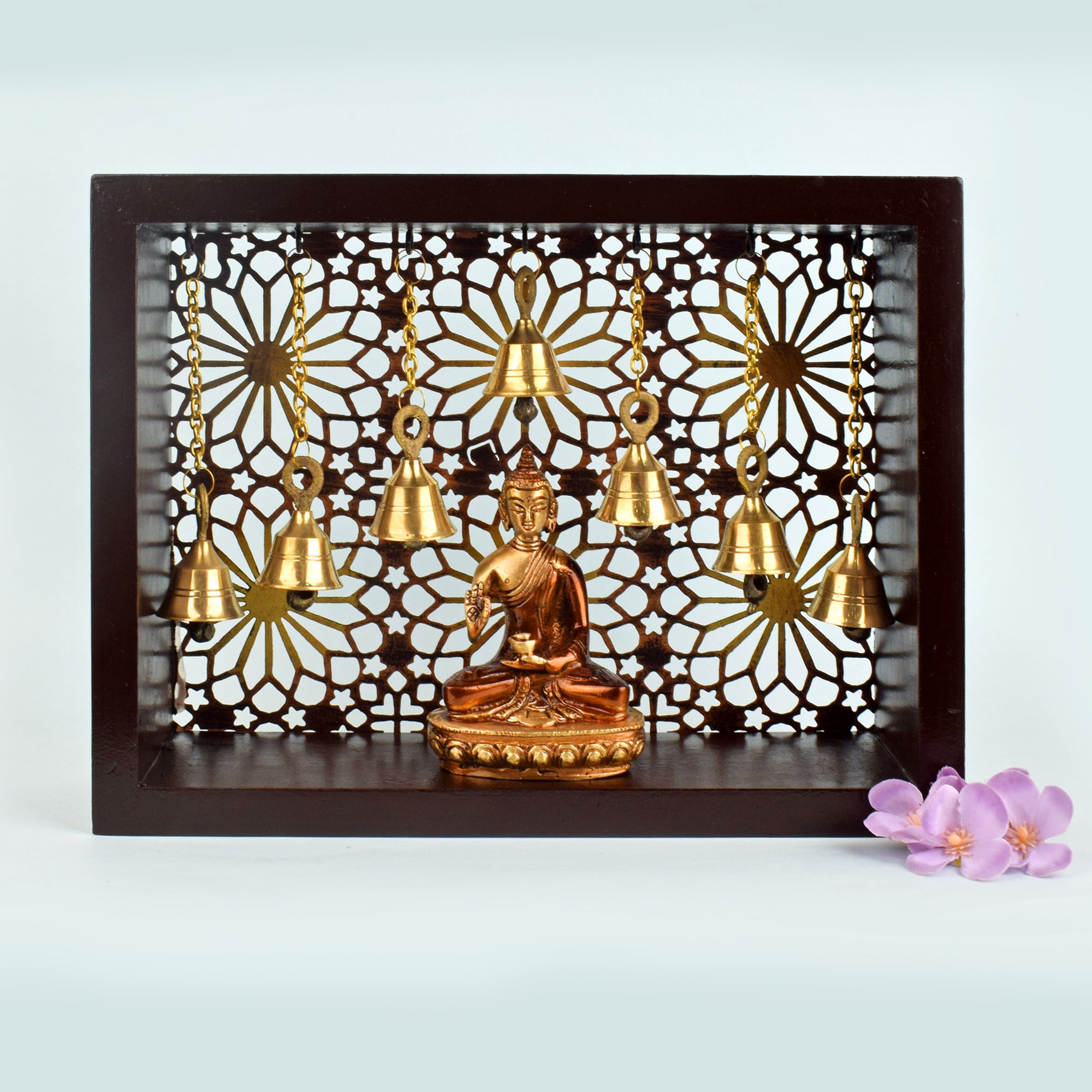 MDF Puja Mandir with Brass Bells – satvikstore.in