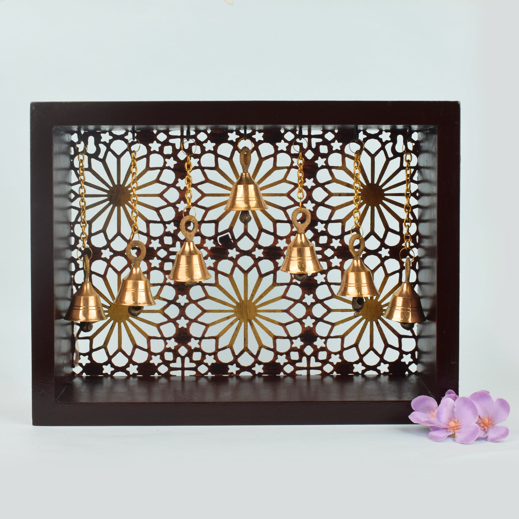 • Color:Β Color : Brown , Made up of MDF material with Wooden Pattern Design and Brass Bells.