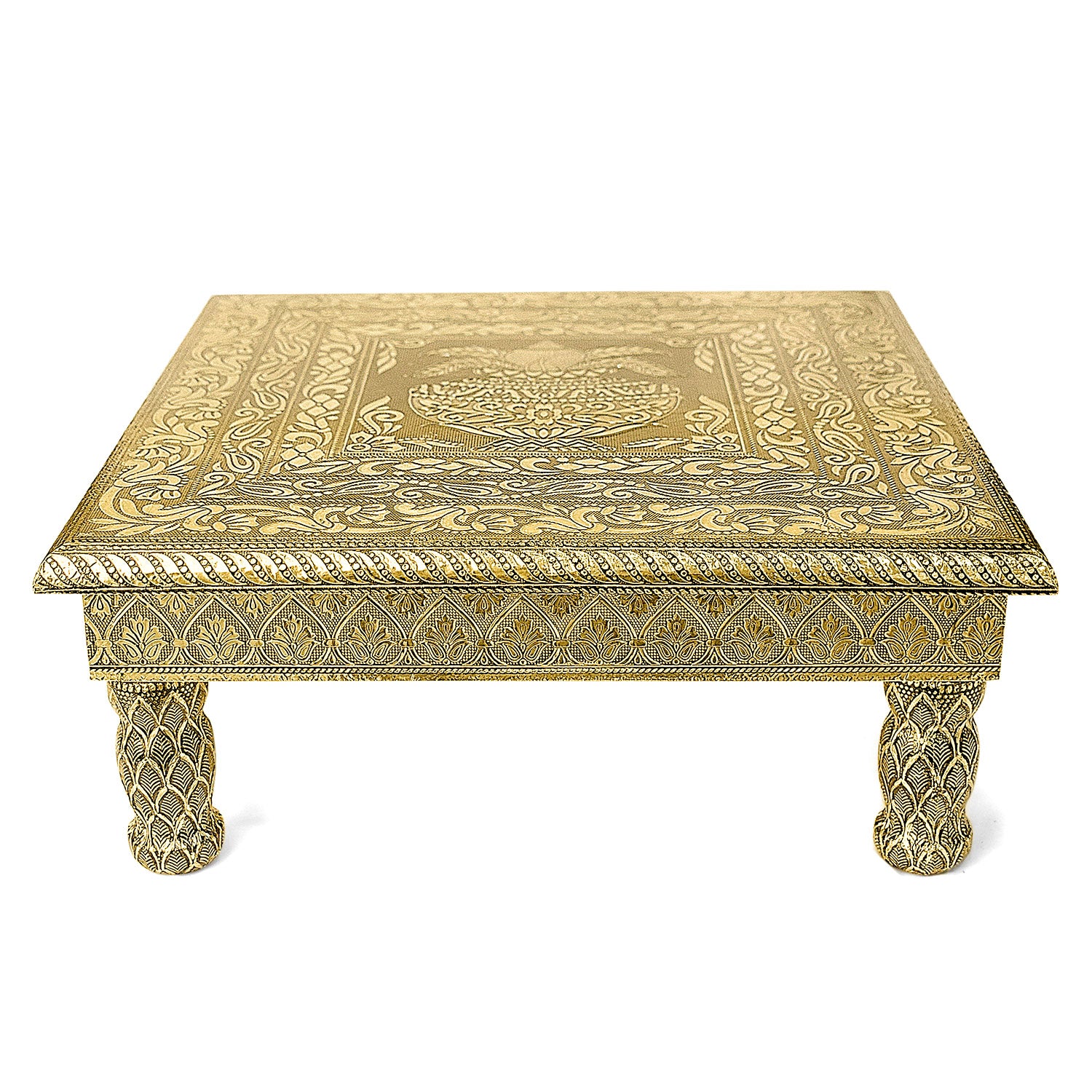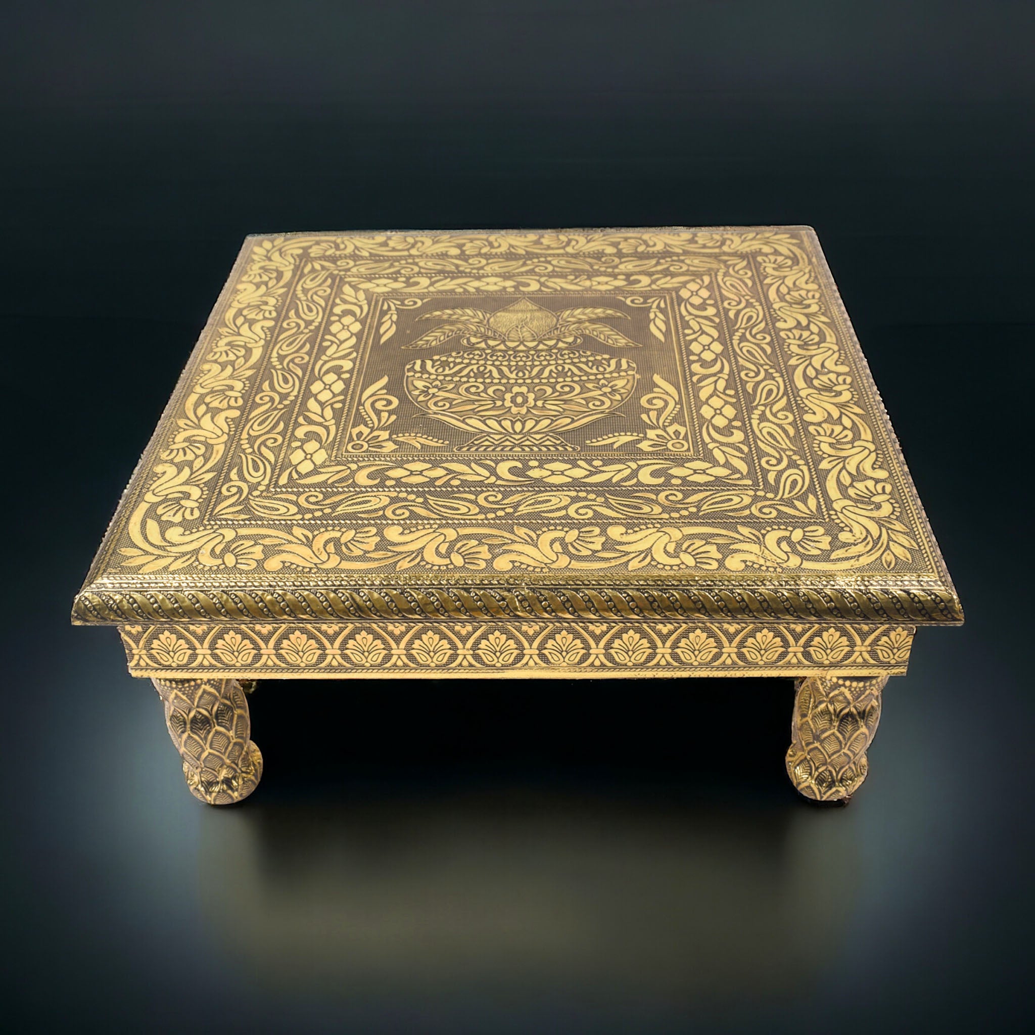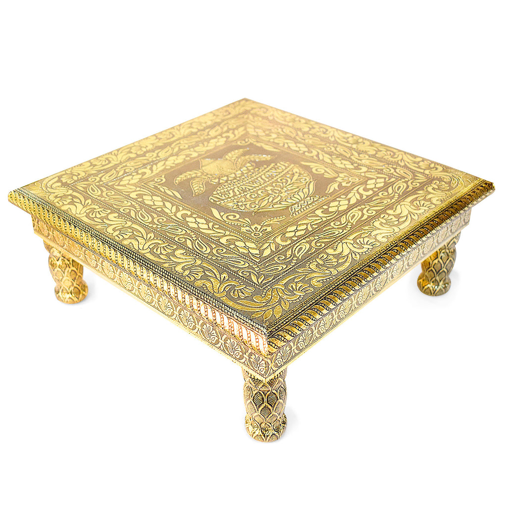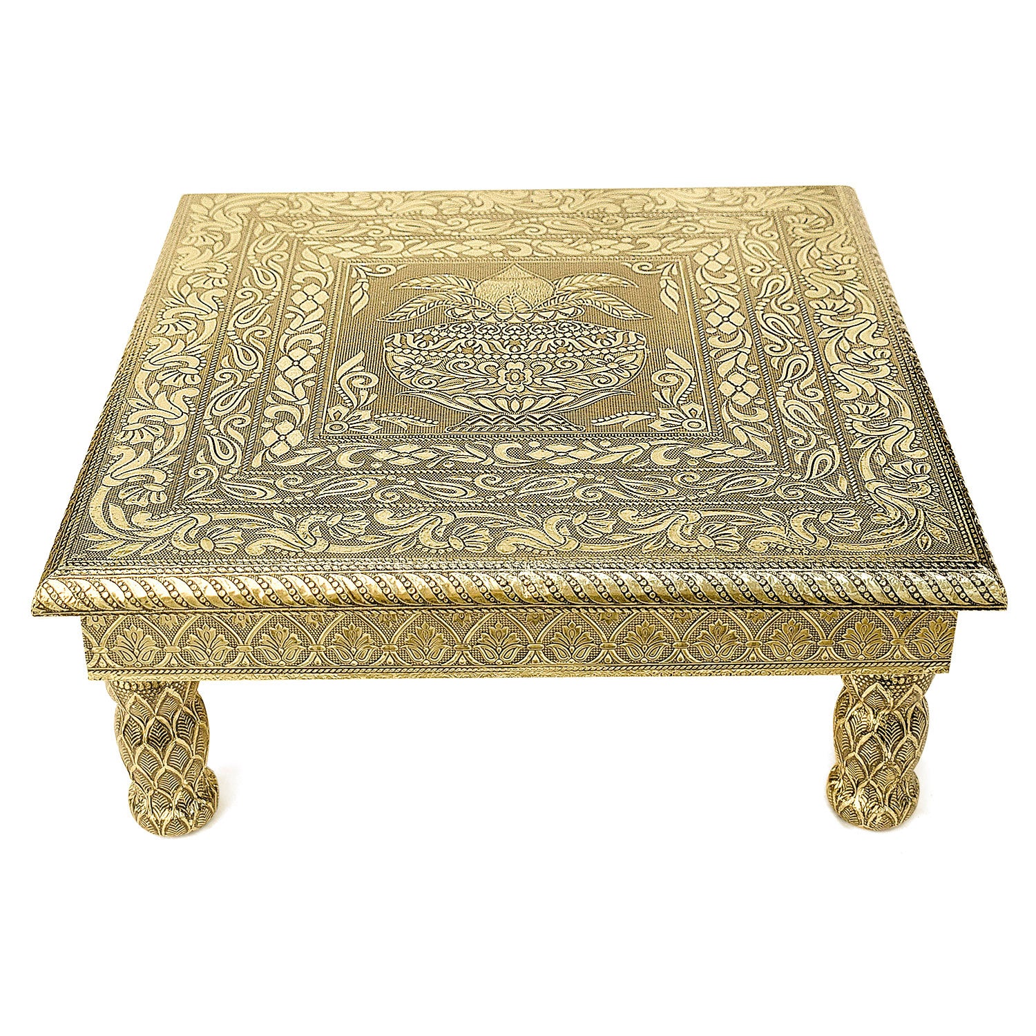 Traditional Splendor: Wooden Chowki Enhanced with Kalash Meenakari – satvikstore.in