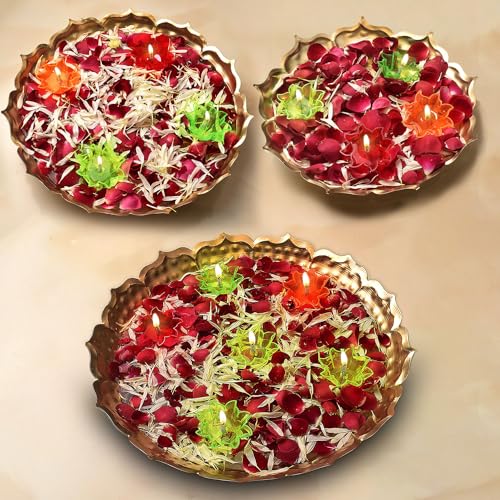 Metal Lotus Shape Urli for Decor With Floating Diya (Pack of 3)