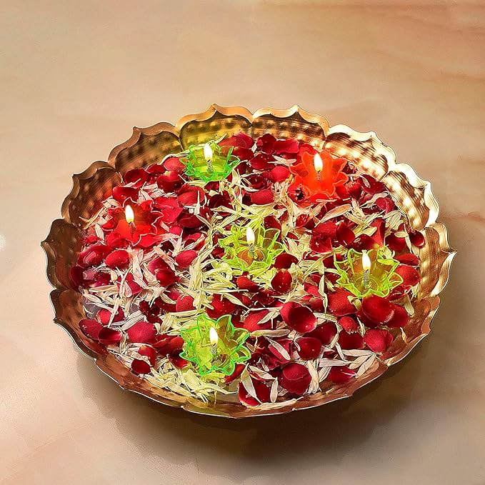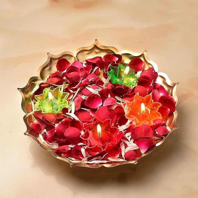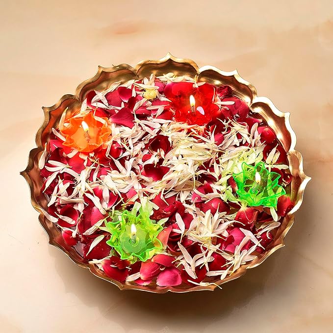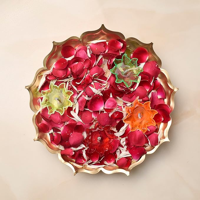 Metal lotus urli | Floating diya set | Lotus shape urli decor | Decorative urli with diyas | Urli set for home decor | Pooja room urli | Festive urli decoration | Diya floating urli | Traditional lotus urli | Home decor with floating diya |