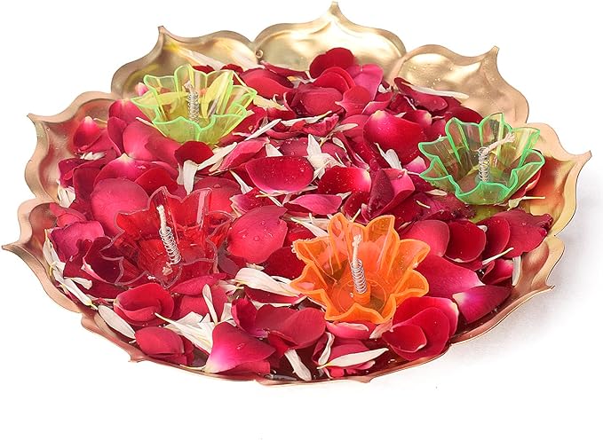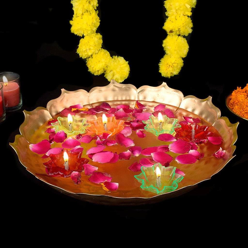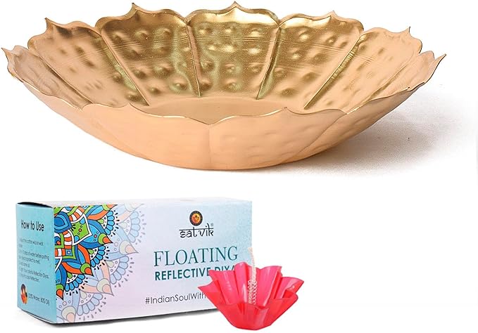 Buy Online Metal Lotus Shape Urli With Floating Diya | Satvikstore.in – satvikstore.in