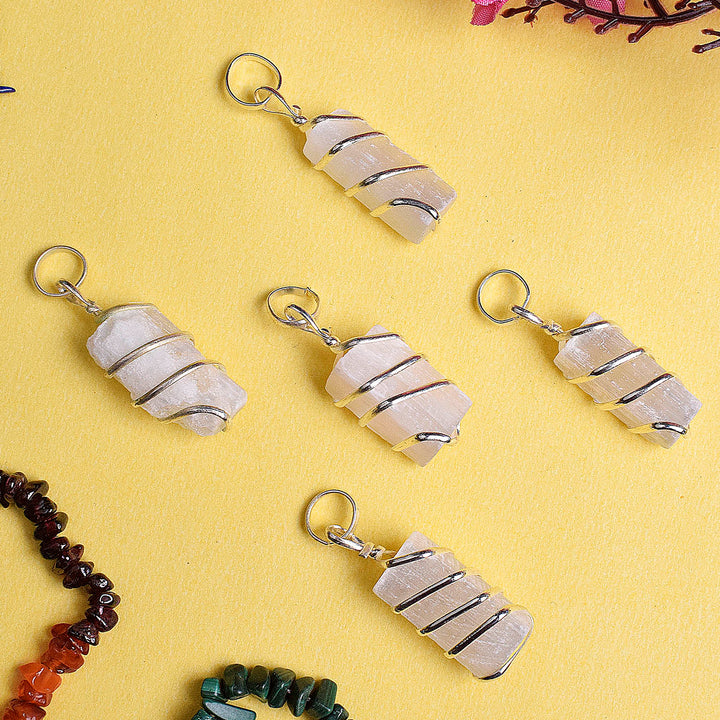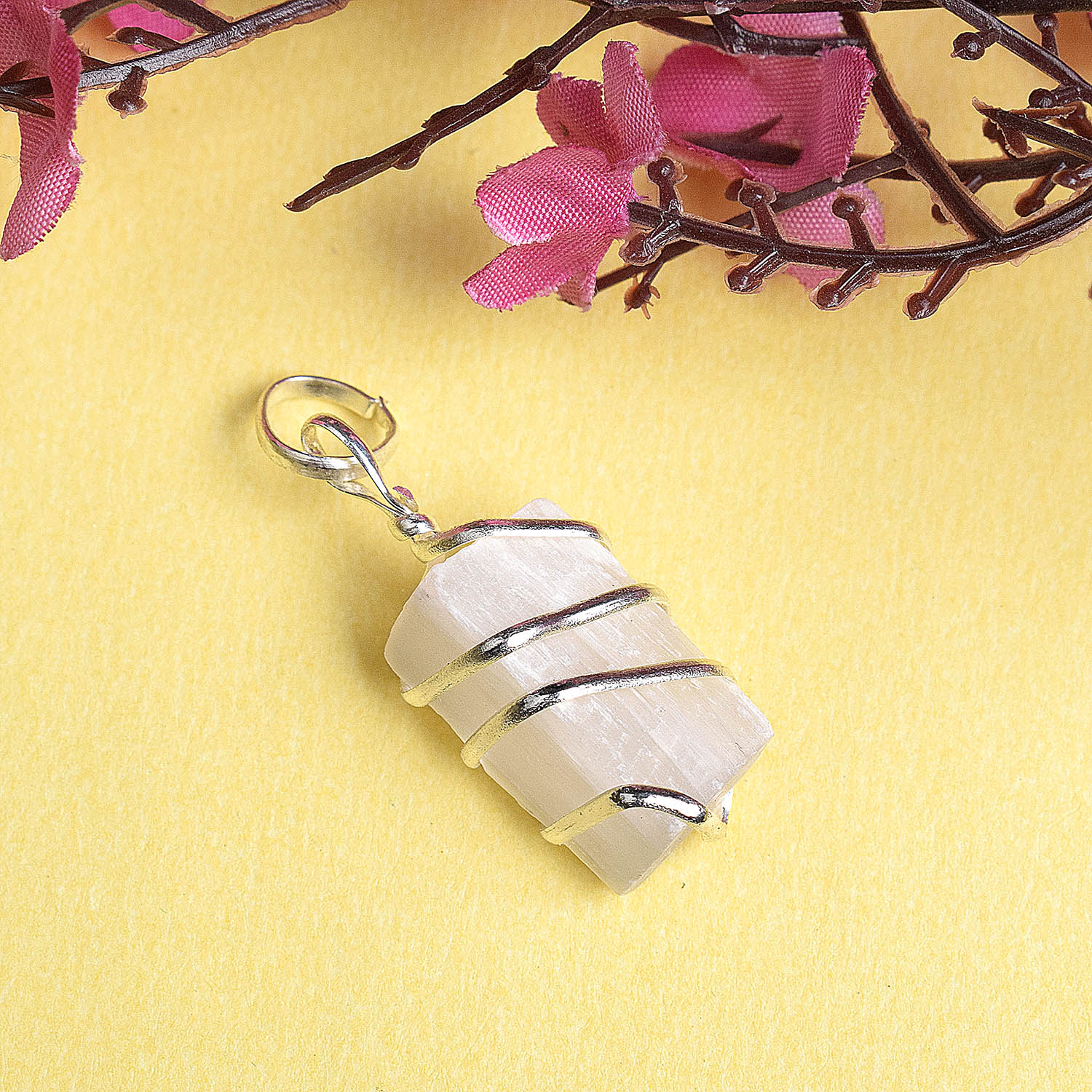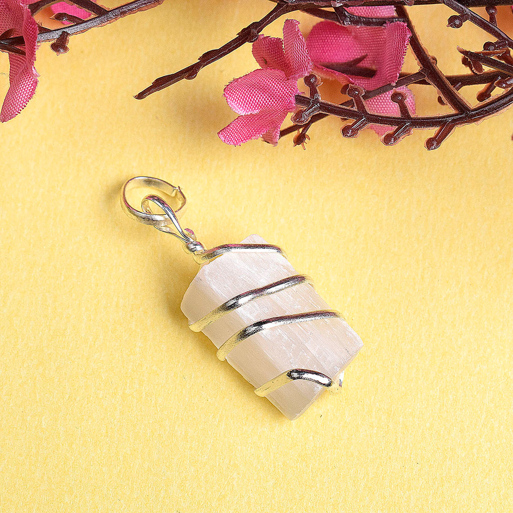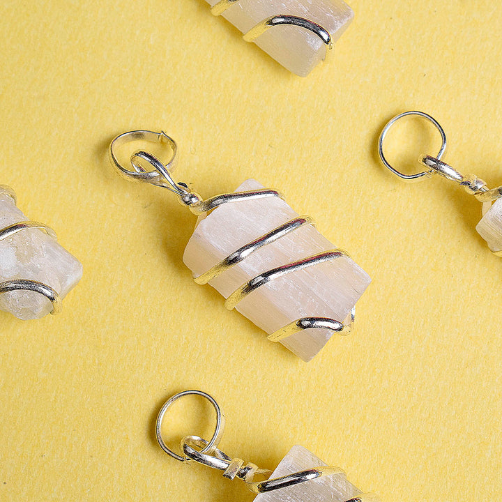 Natural Wire Wrapped Selenite Crystal Stone Pendant | Satvikstore.in – satvikstore.in