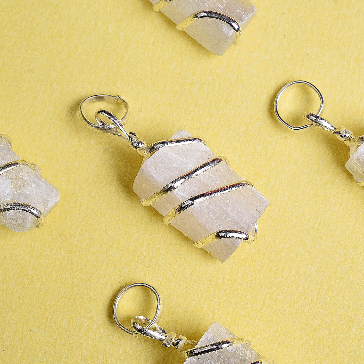 • Item Name: 1 Pc Natural Wire Wrapped Selenite Crystal Stone Pendant