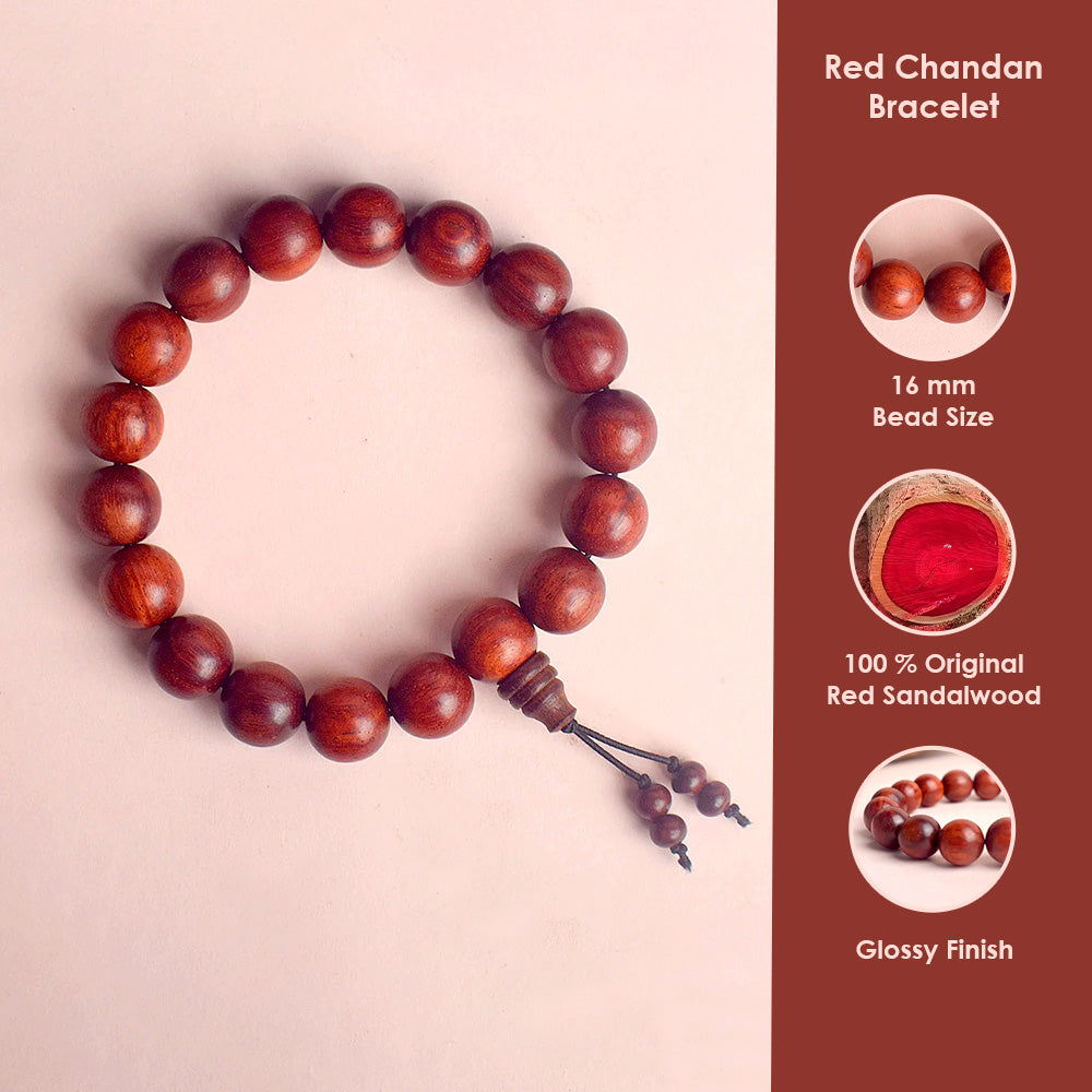 Shop Red Chandan Bracelet – 16mm 10 Natural Beads | Satvikstore.in – satvikstore.in