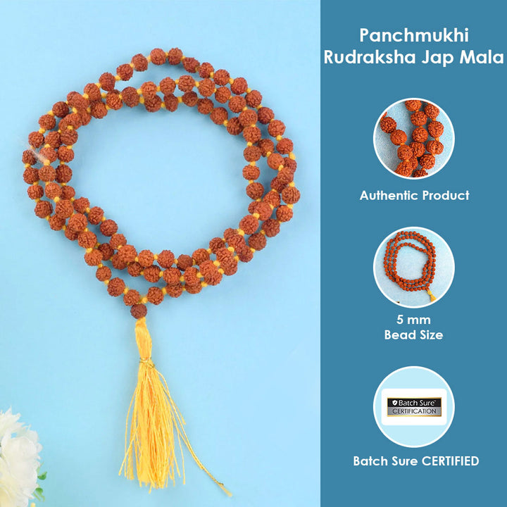 Panchmukhi Rudraksha Mala | 5mm Rudraksha Jaap Mala | Panchmukhi Rudraksha Mala for Meditation | Lord Shiva Prayer Mala |  Panchmukhi Rudraksha for Blessings | Panchmukhi Rudraksha Beads |  Rudraksha Beads for Positive Energy |