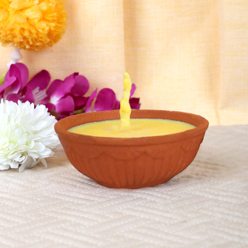 Pure Cow Ghee Akhand Jyot 6 to 8 Hours Burning Clay Diya Pack of 1
