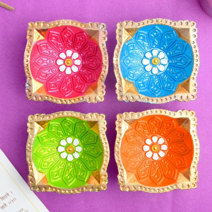Item Nam: Radiant Clay Diyas Illuminating Diwali with Tradition and Artistry Set of 4