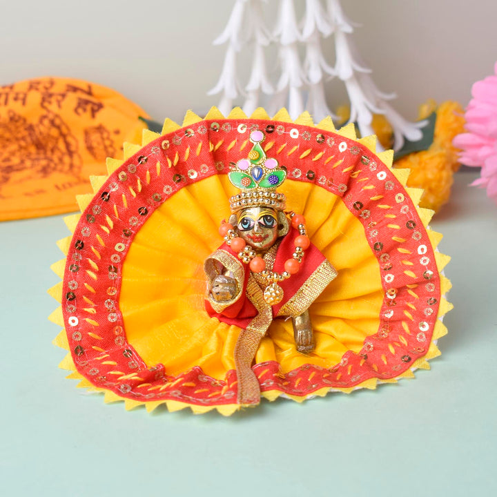 Radiant Yellow-Red Laddu Gopal Dress with Sequin Border