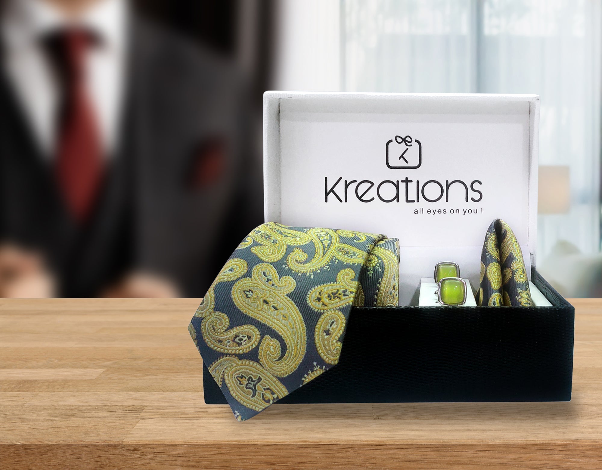 • Gift Set: Premium Quality Microfiber Men Wrinkle Free Tie with Pocket Square and Cufflinks.