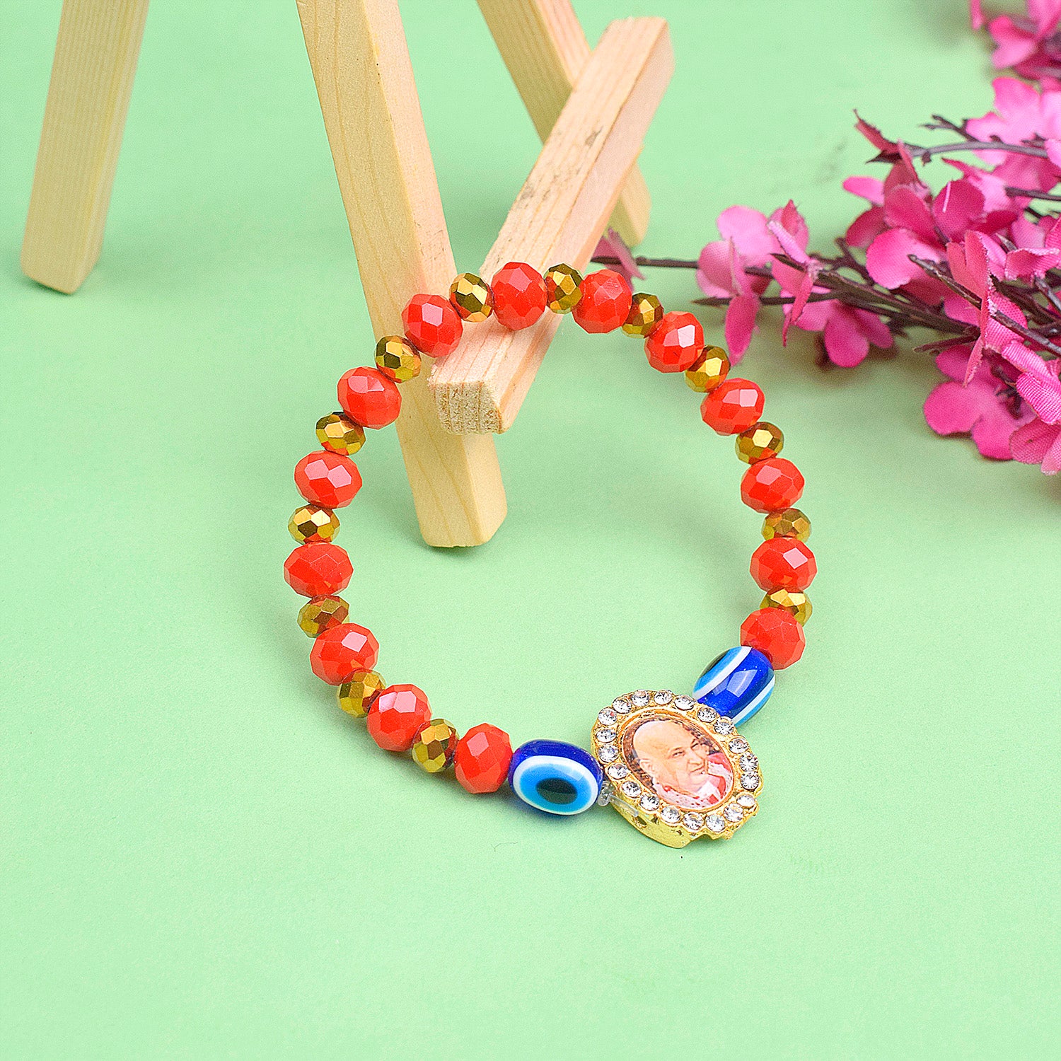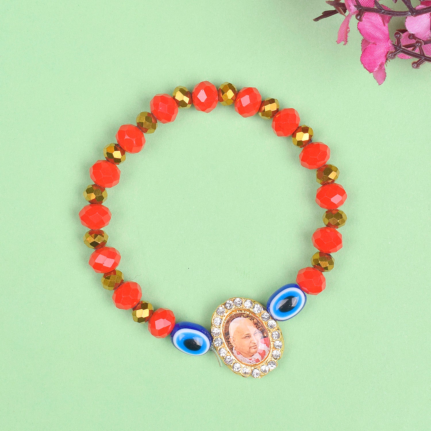 Red Beads with Evil Eye Bracelet with Jai Guruji Swaroop Handmade Bracelets for Men and Women