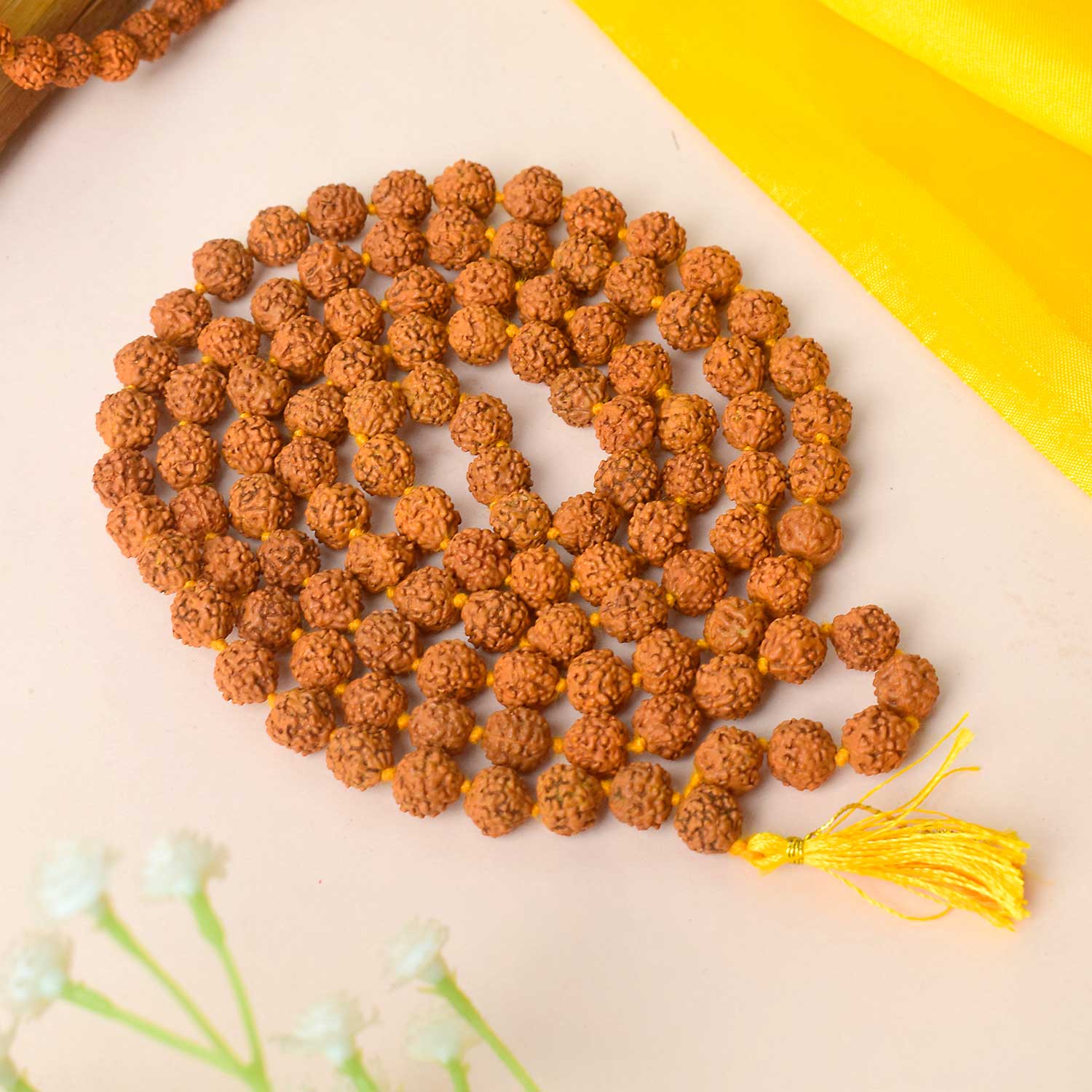• Material : Made from High Quality Rudraksha Mala – Natural Brown Beads for Meditation & Healing