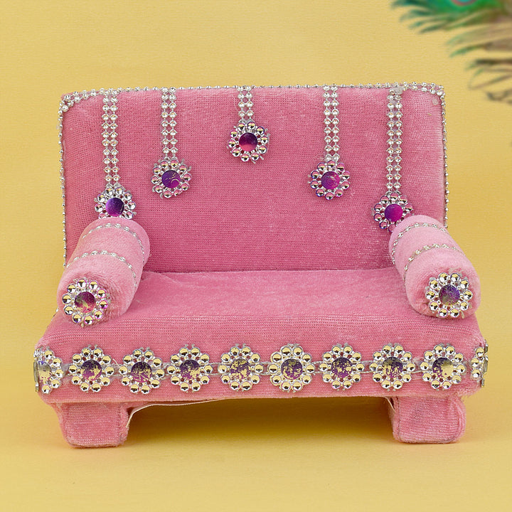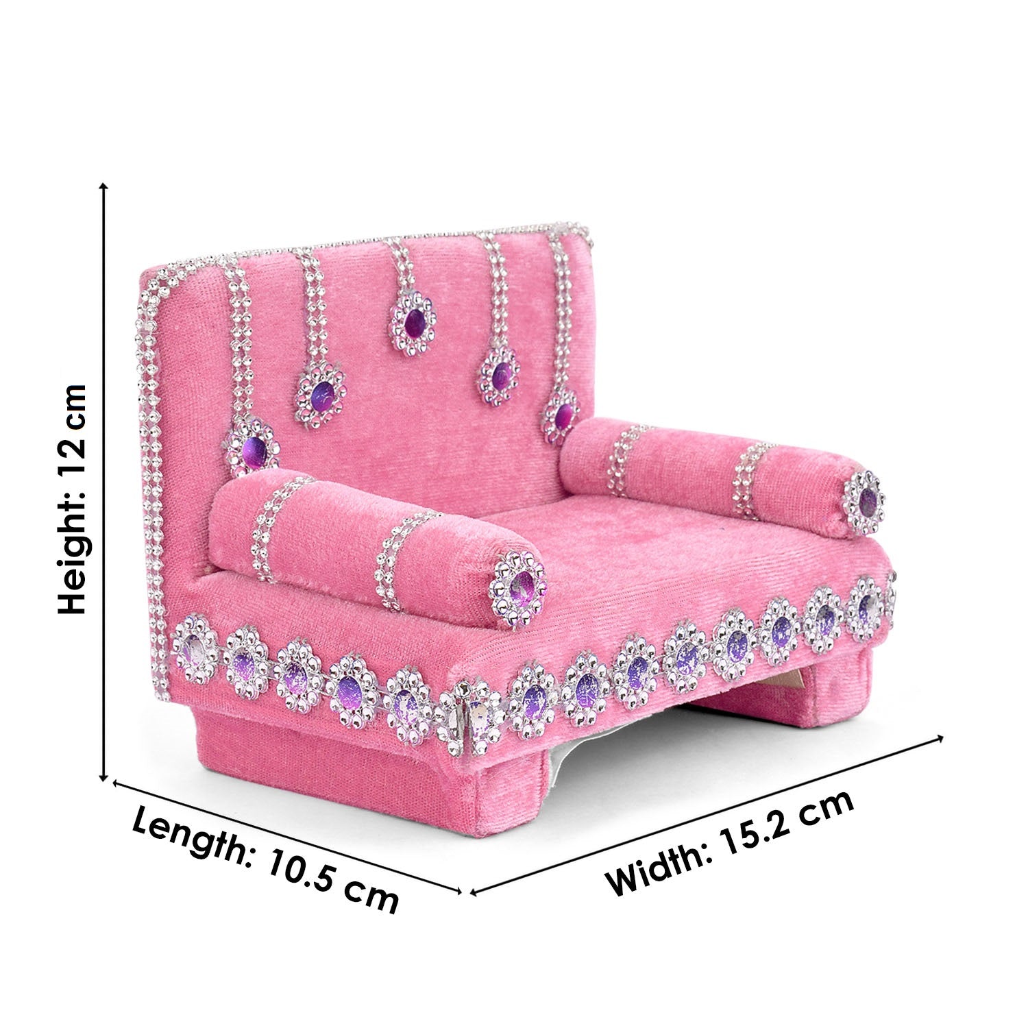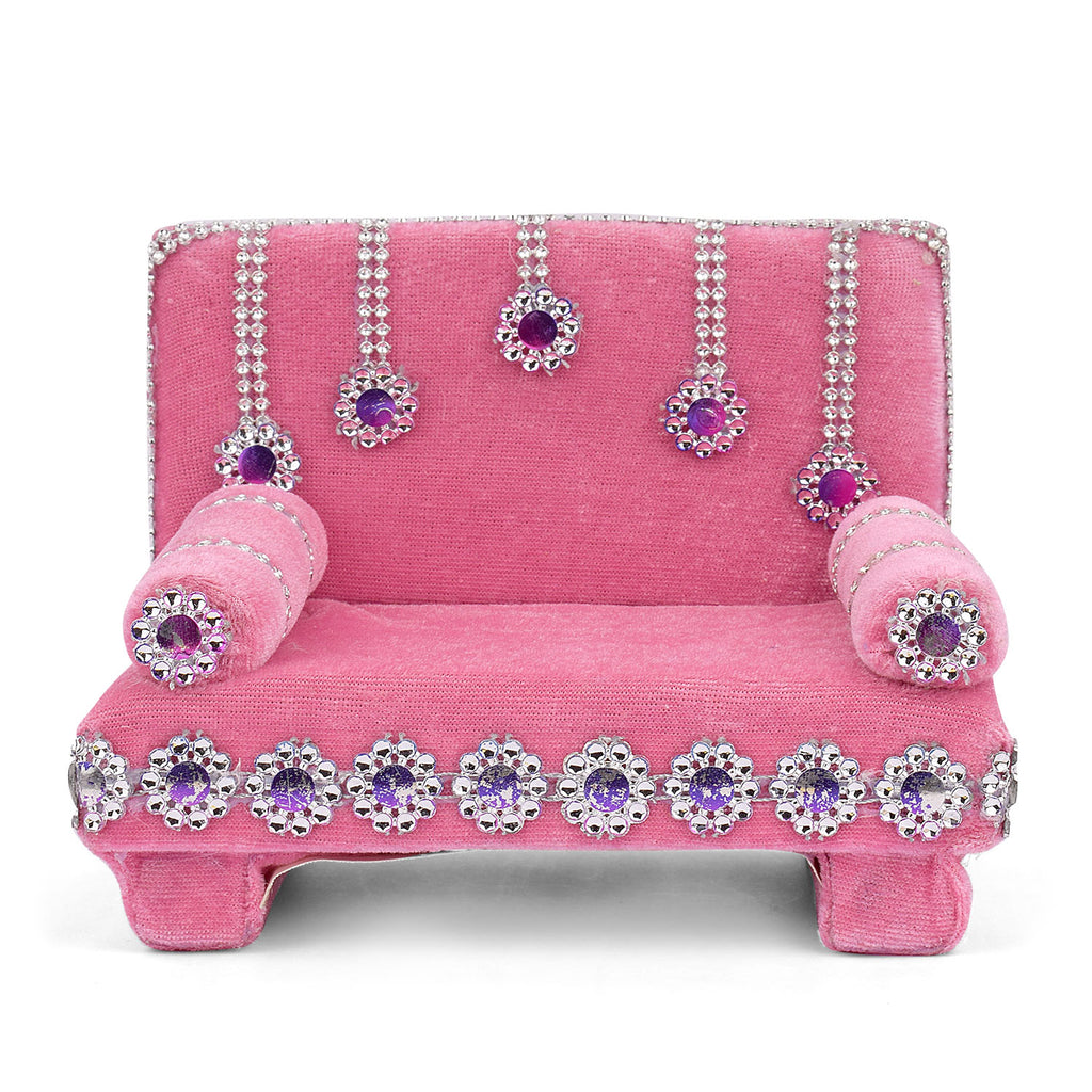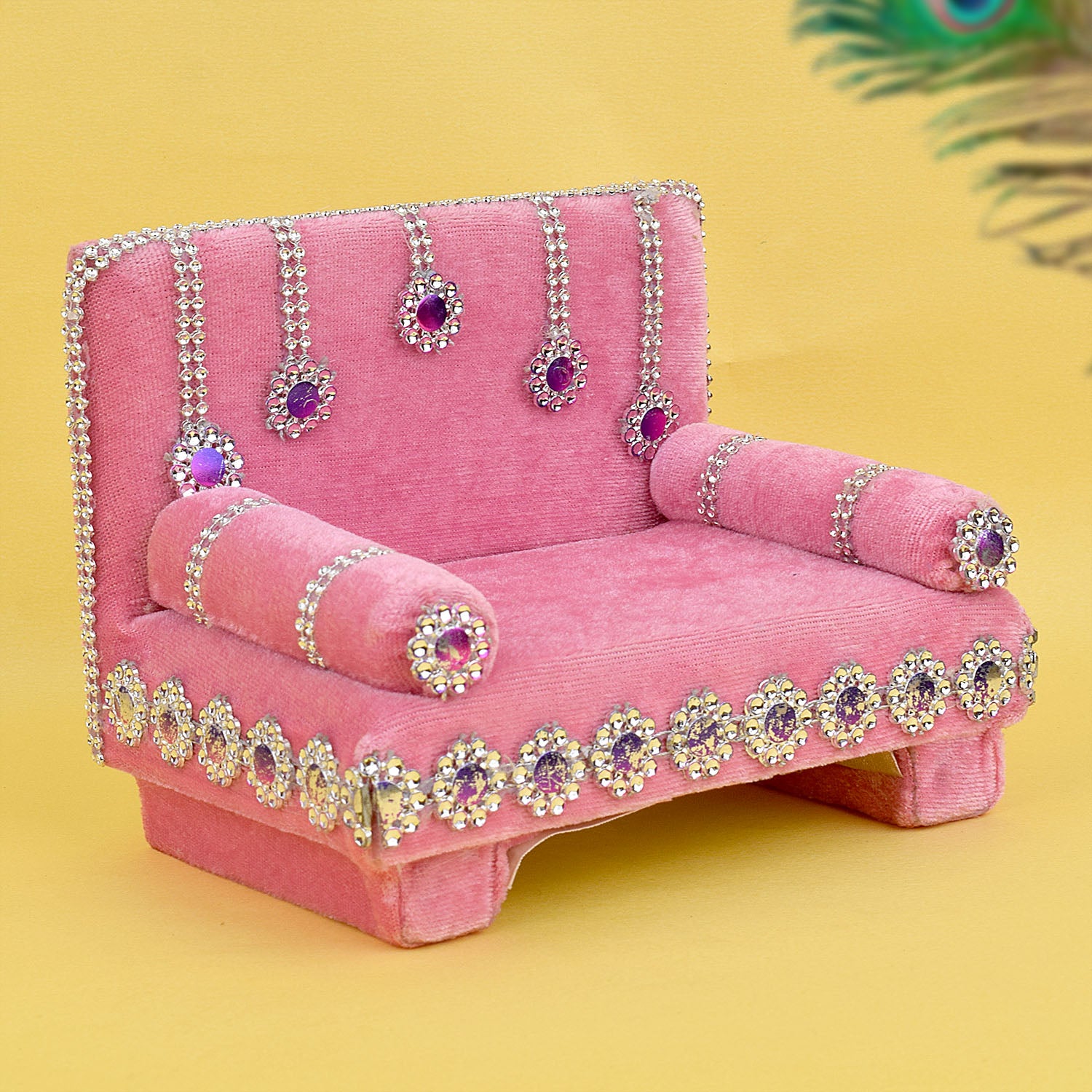 velvet laddu gopal singhasan | small krishna throne | red velvet deity seat | pink singhasan for bal gopal | pooja singhasan for laddu gopal | divine kanha ji singhasan | soft velvet krishna throne | small size pooja decor | laddu gopal singhasan velvet | satvikstore pooja accessories