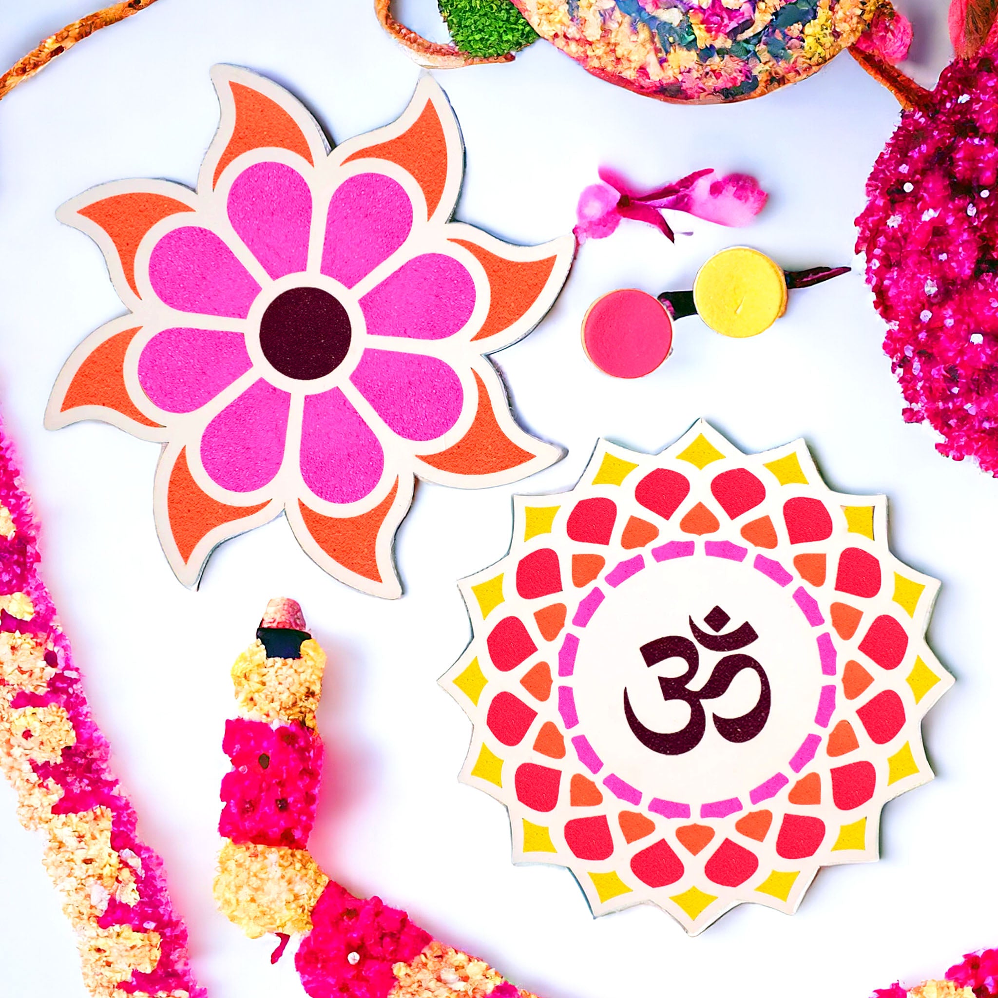 • Safe and Reusable: Made from non-toxic materials, our stencils are safe to use, and the mat is easy to clean and reuse for future celebrations. Decorate Any Surface: Not limited to just floors, you can also use our rangoli kit to decorate tables, countertops, or any flat surface to enhance the festive ambiance.
