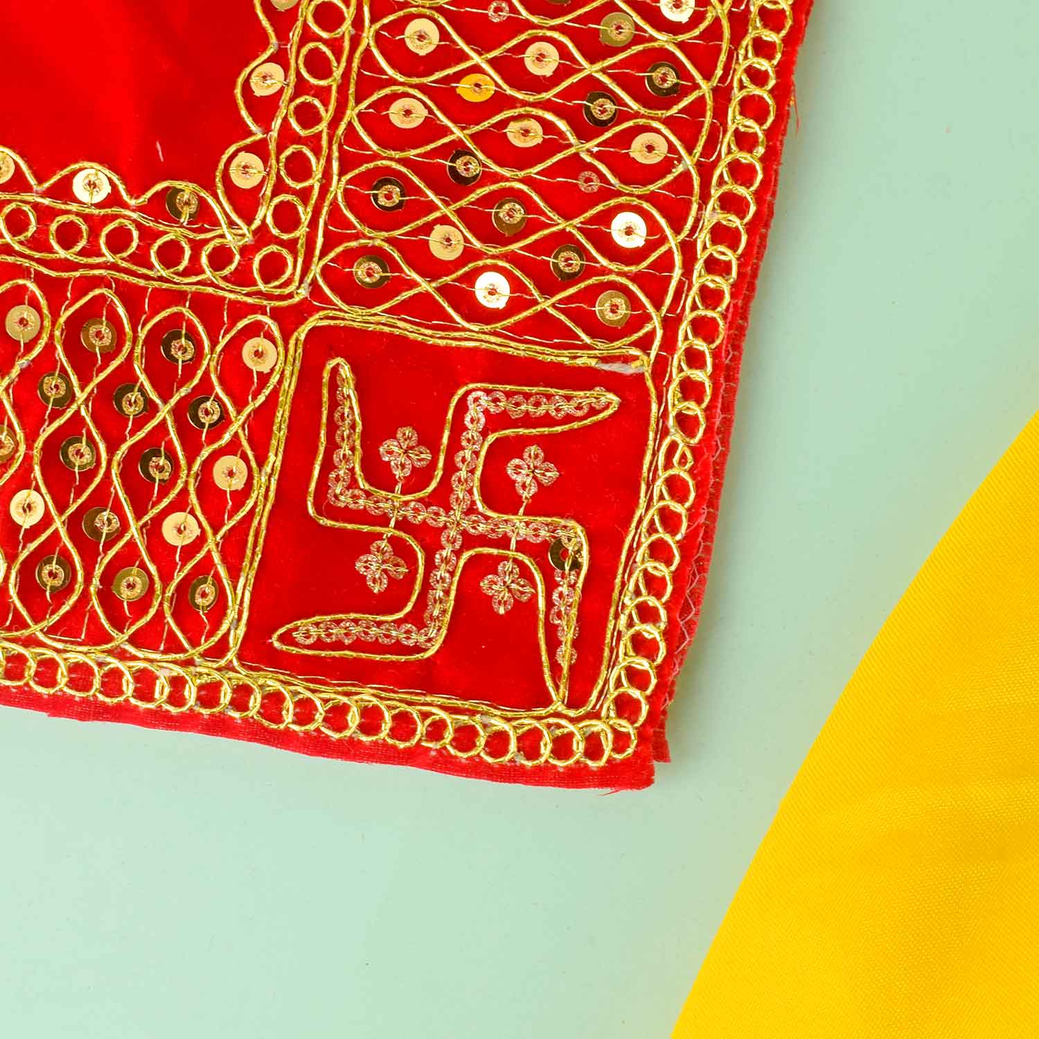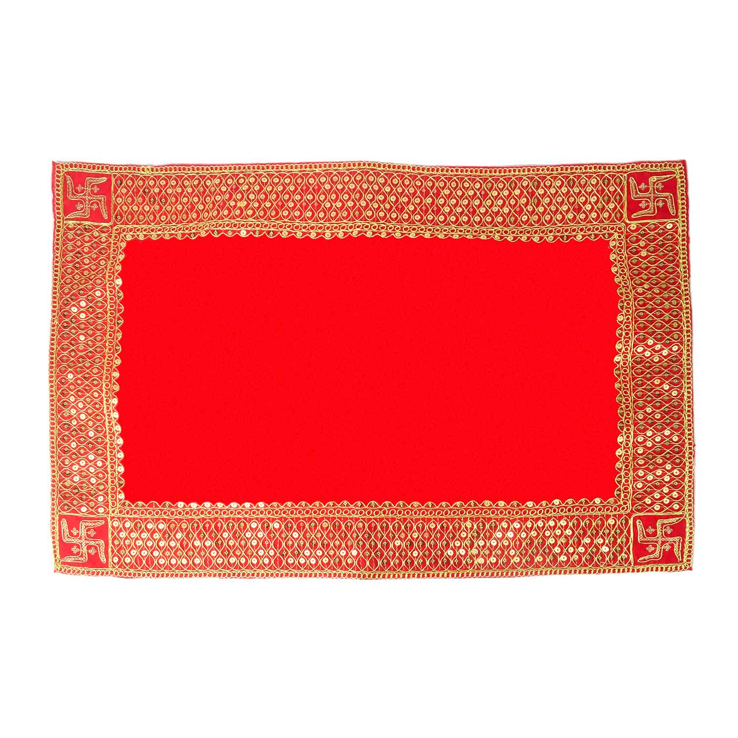 Size and Craftsmanship: 16 x 24 Inch Size, Made from High-Quality Velvet with Swastik Design and Golden Lace all over the Border