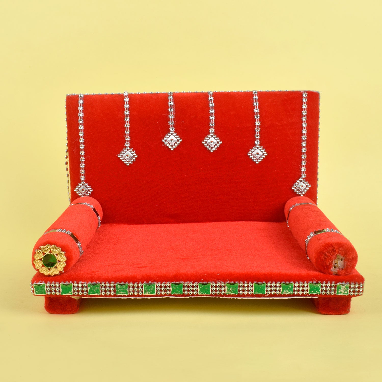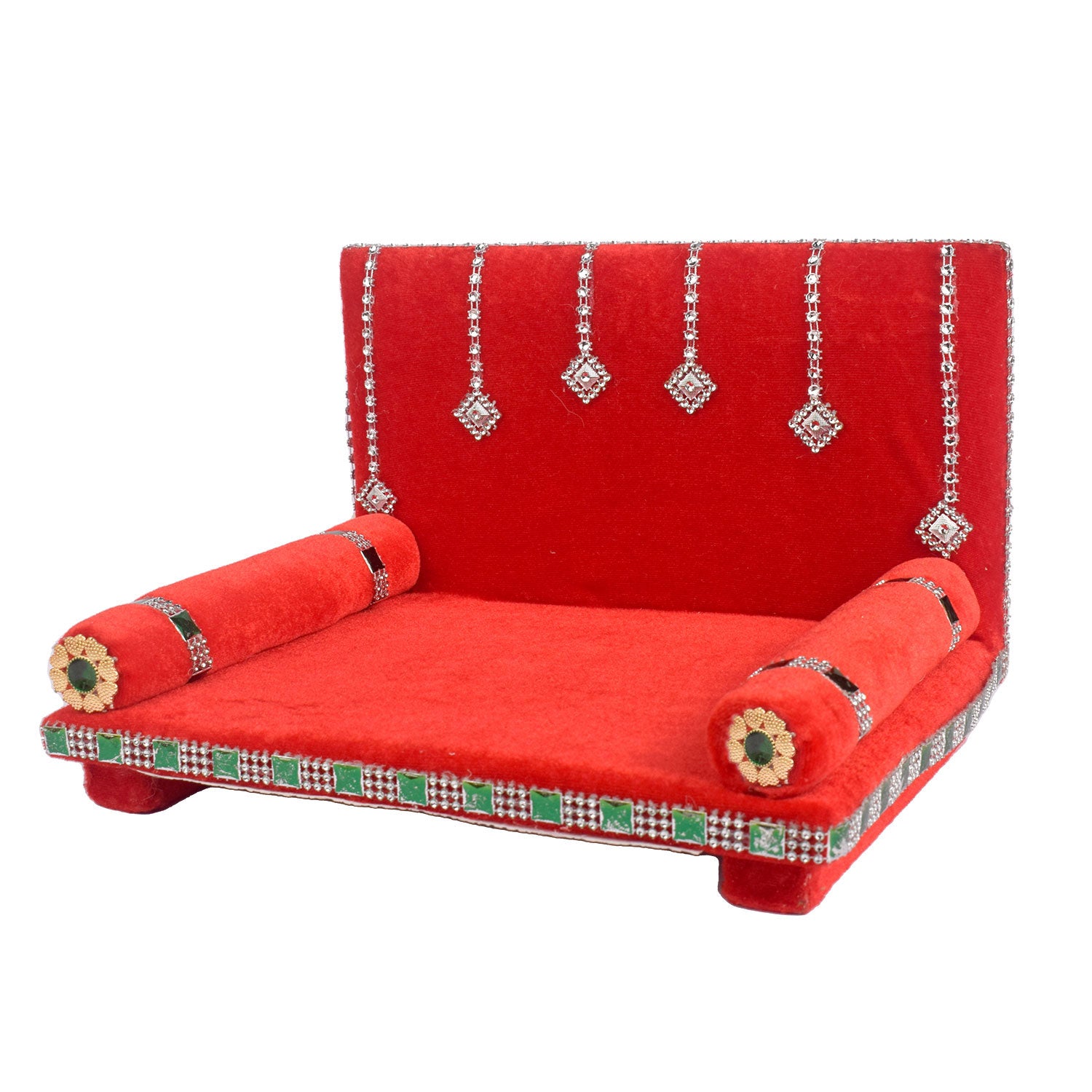 laddu gopal velvet singhasan | red velvet kanha singhasan | pink pooja singhasan for laddu gopal | large krishna singhasan | decorative gopal throne | pooja mandir accessory | velvet deity seat | handcrafted laddu gopal furniture | singhasan for bal gopal | krishna pooja items