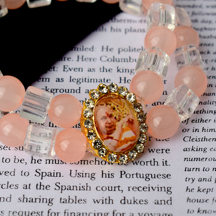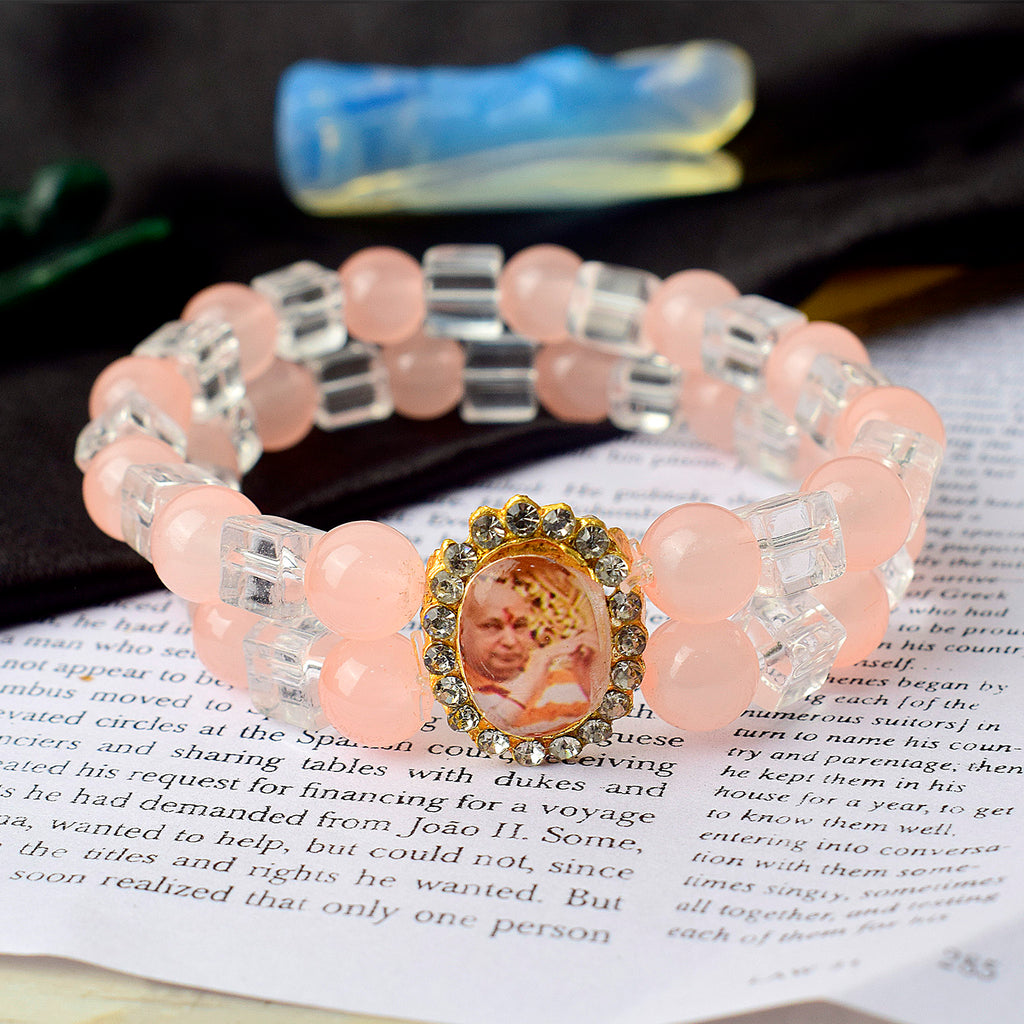 Our Guruji bracelet is a tangible symbol of divine connection. Crafted with care and reverence, it is designed to be worn close to your heart, serving as a constant reminder of Guruji's presence. The bracelet is adorned with sacred symbols and gemstones that hold spiritual significance, channeling positive energy and protection.