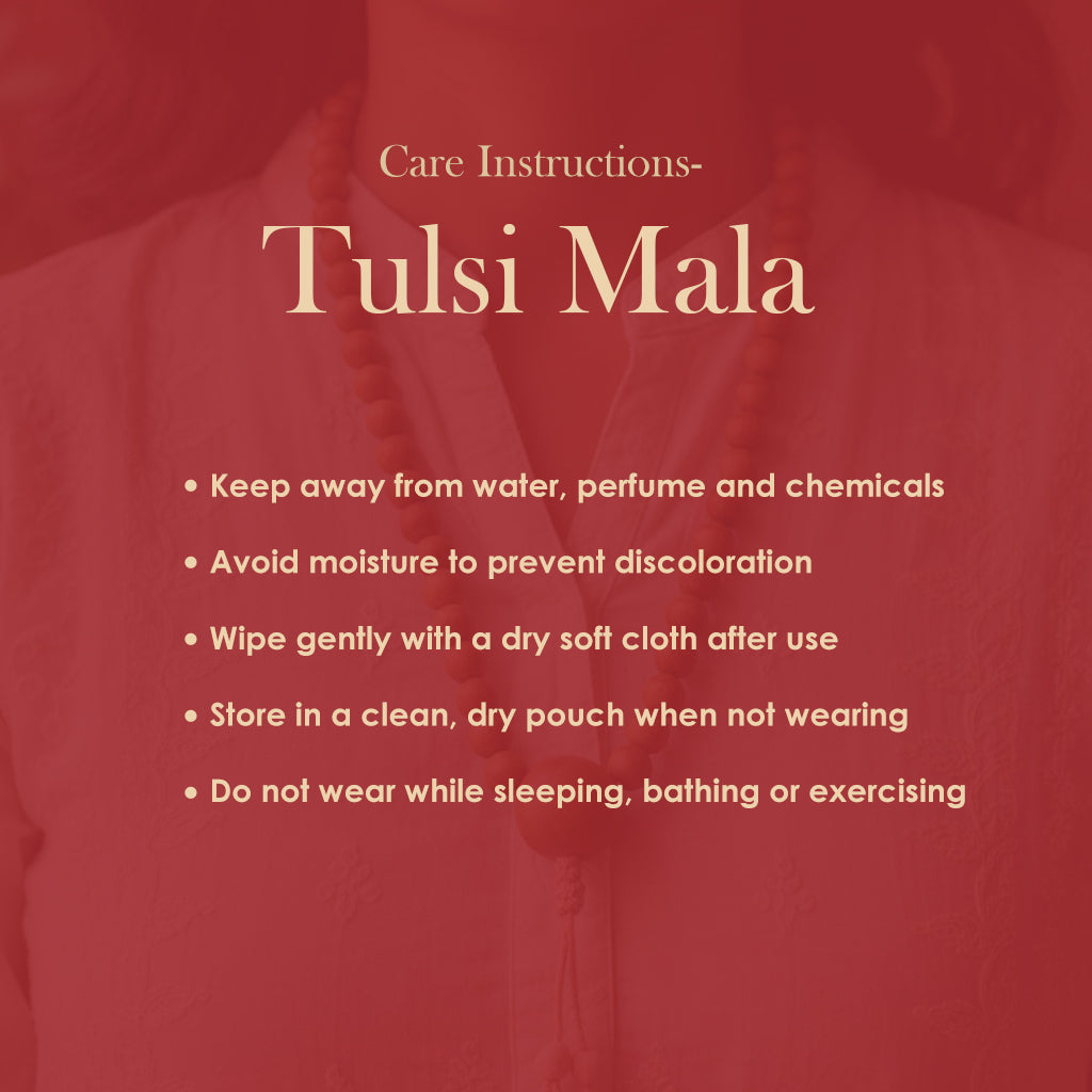 To maintain the sanctity and durability of your Tulsi Mala, follow these simple care tips:
